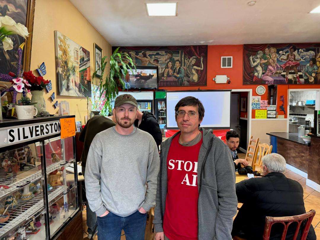 Stop AI 的 Sam Kirchner(左)和 Guido Reichstadter 在 Silverstone 咖啡馆