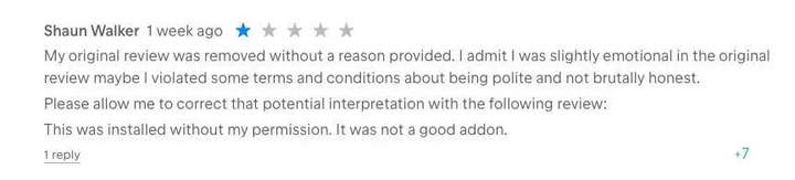 另一类常见的差评则提到,AI Assistant 会在未经许可的情况下自行安装。一位 Reddit 用户直接称其为“一款会自动修复 / 重新安装的烦人插件”。
