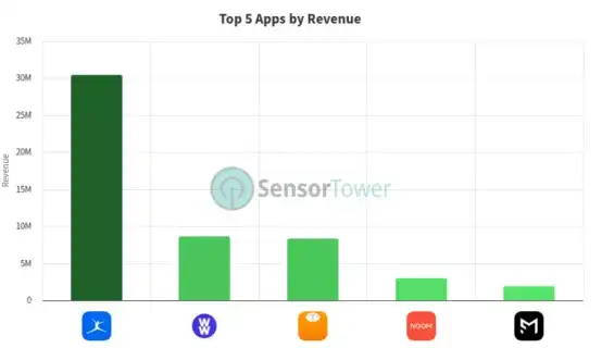 (自左向右MyFitnessPal、WeightWatchers Program、Lose It! – Calorie Counter 、Noom: Healthy Weight Loss Plan、MacroFactor - Macro Tracker)