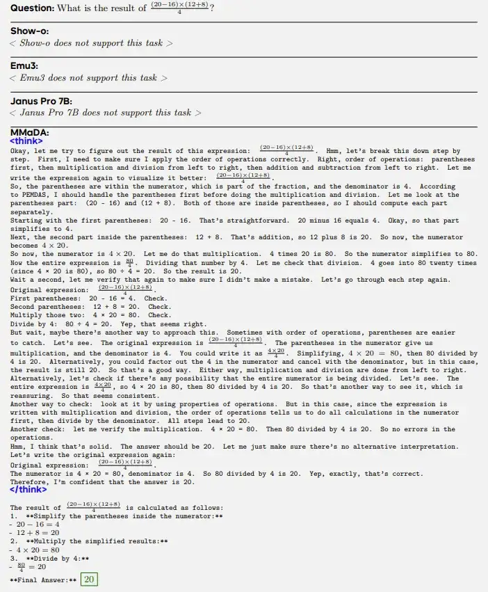 MMaDA 执行文本推理任务示例,来自论文 arXiv: 2505.15809