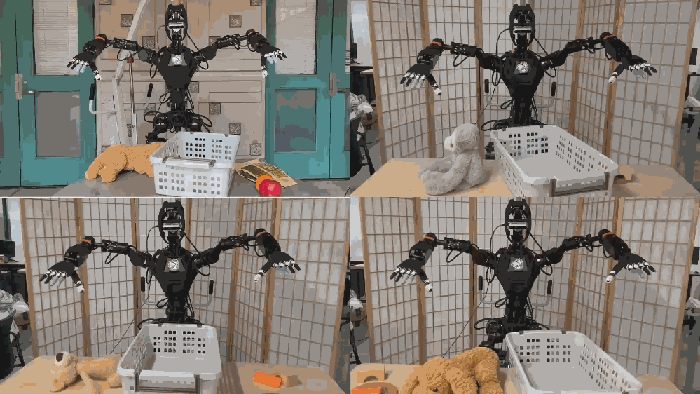 OKAMI 采用了一种两阶段过程,可将人类运动重新定向成人形机器人的运动,从而可在不同初始条件下完成任务。
