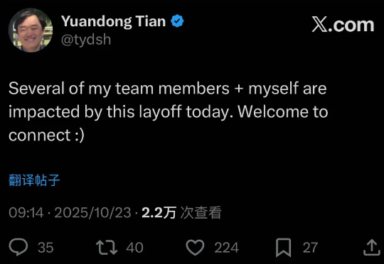 太疯狂了!Meta裁员裁到田渊栋头上,连组员一锅端