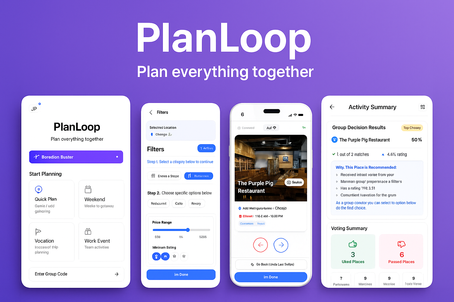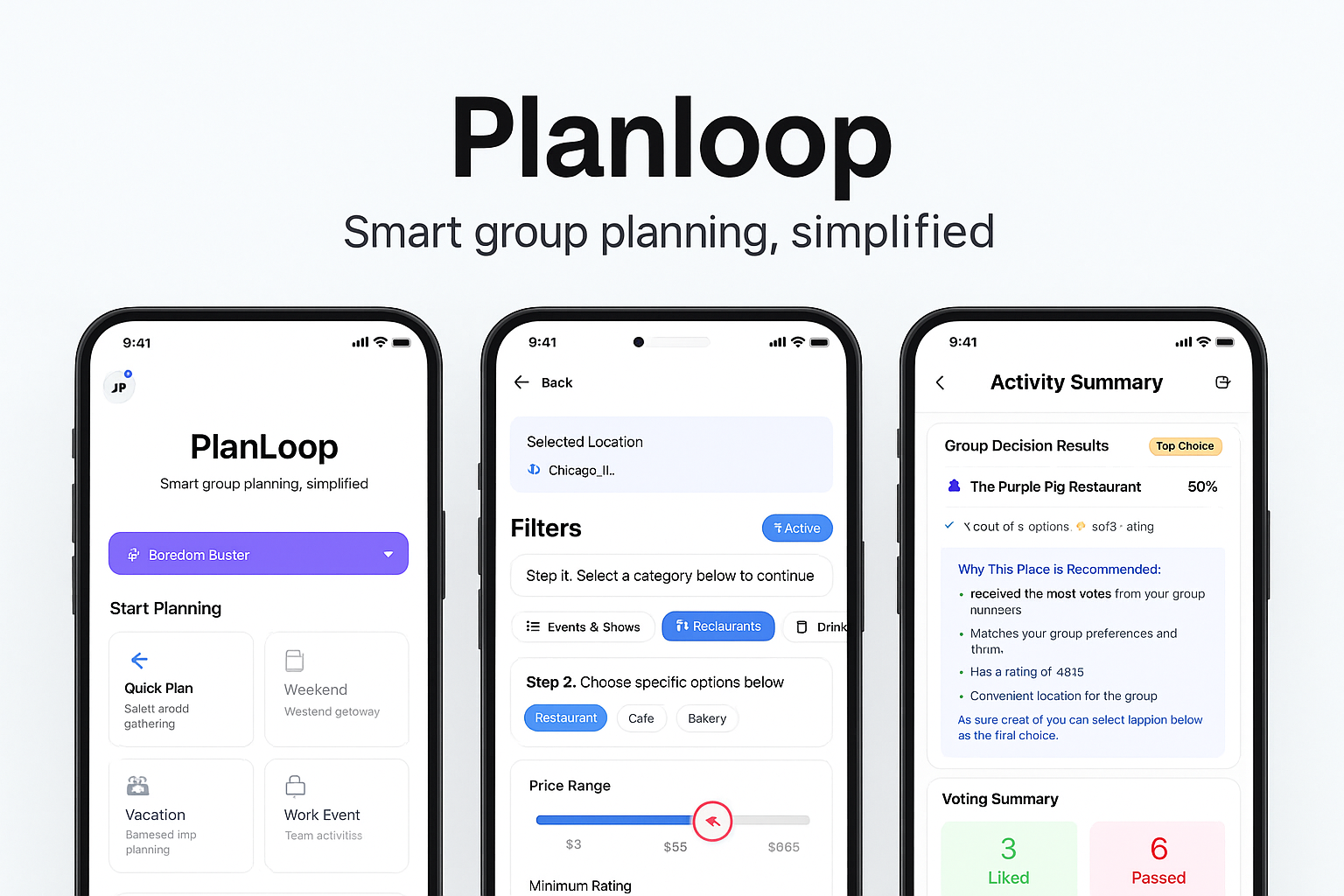 Planloop is the AI-powered app that helps friends, families, and teams plan activities—without the chaos. Swipe on options, vote as a group, and get smart, personalized results instantly. No stress, no drama. Plan better. Together → planloop.io