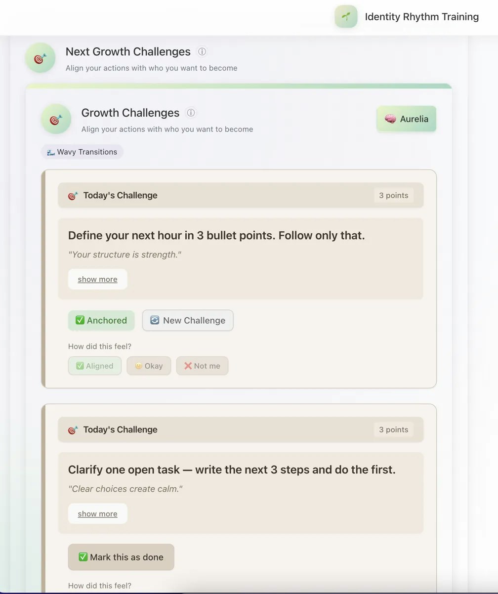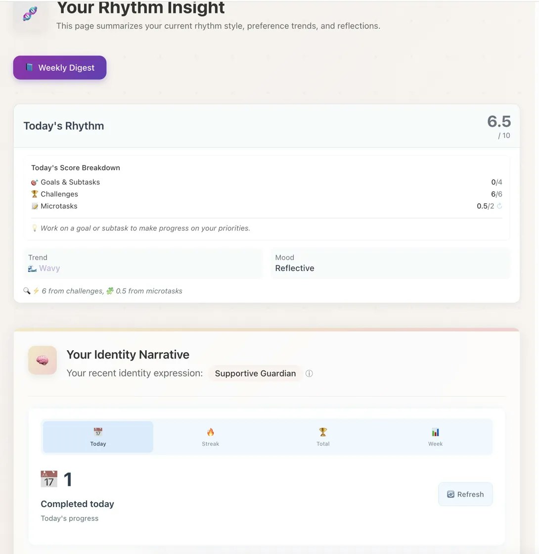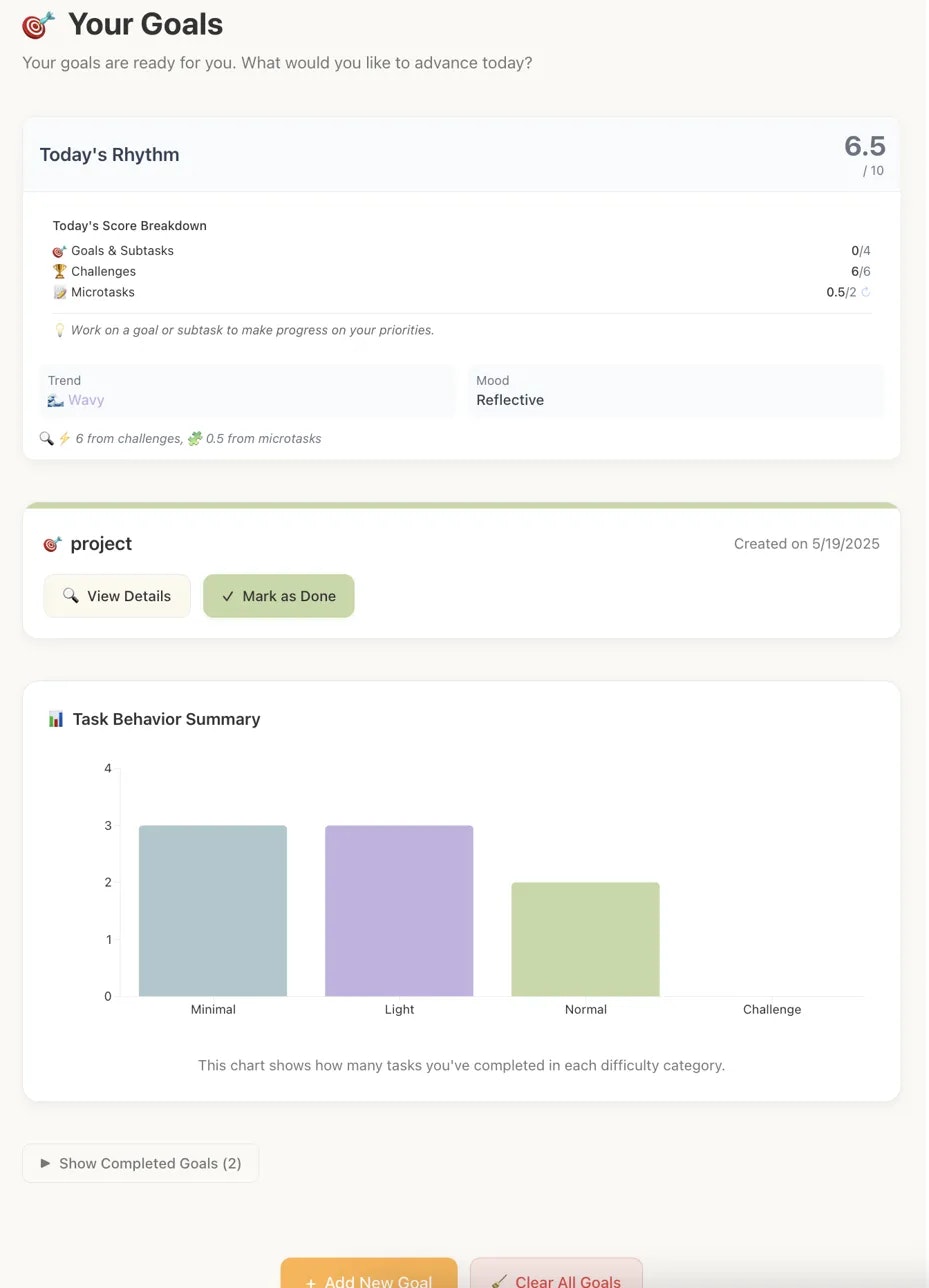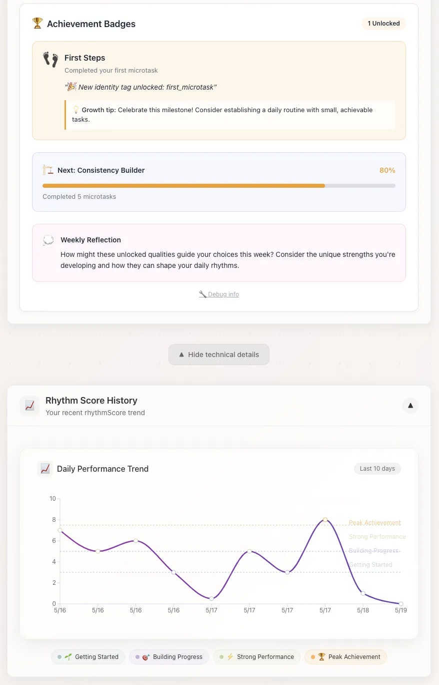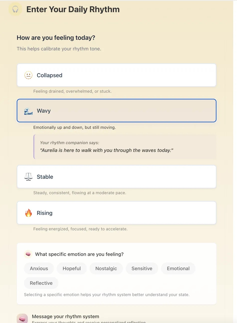 You know what to do. But you can't start. RhythmOS bridges feeling stuck → taking action. Check how you feel → Get AI-matched tasks for your current state → Build momentum from where you are. Not another task app. A starting system for when you're stuck.