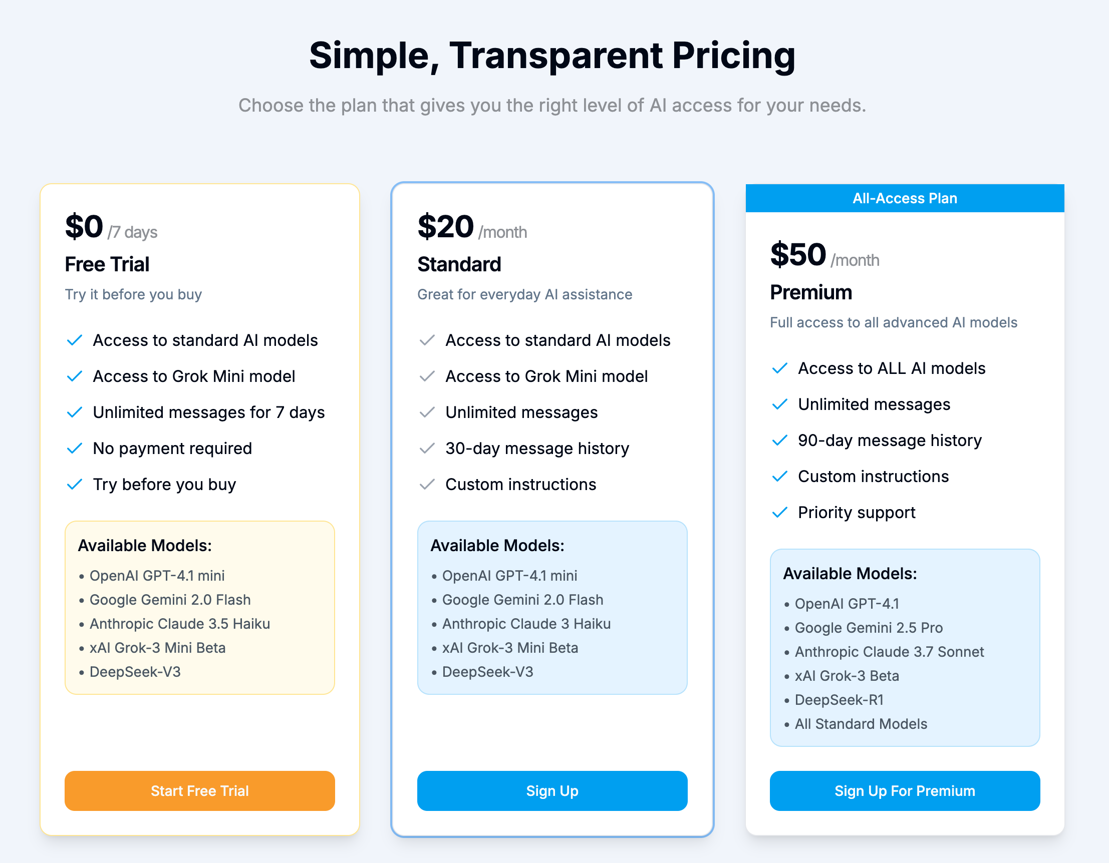 Caleus makes it easy to choose the best AI for any question — from GPT-4 and Claude to Gemini, Grok, and more. No more switching apps or subscriptions. With lightning-fast responses and a simple interface, Caleus is your one-stop AI chat hub.