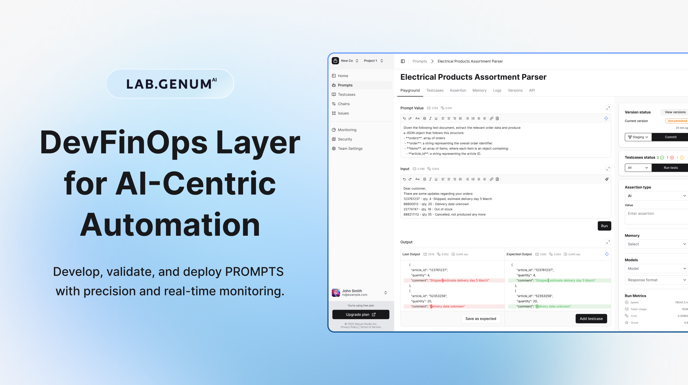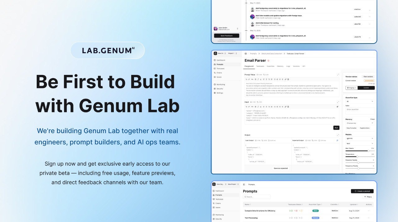 Genum是一款专为AI团队设计的提示管理框架,旨在精准开发、验证和监控基于提示的自动化流程。该框架提供测试、持续集成/持续交付(CI/CD)、成本控制及实时性能洞察等核心功能。