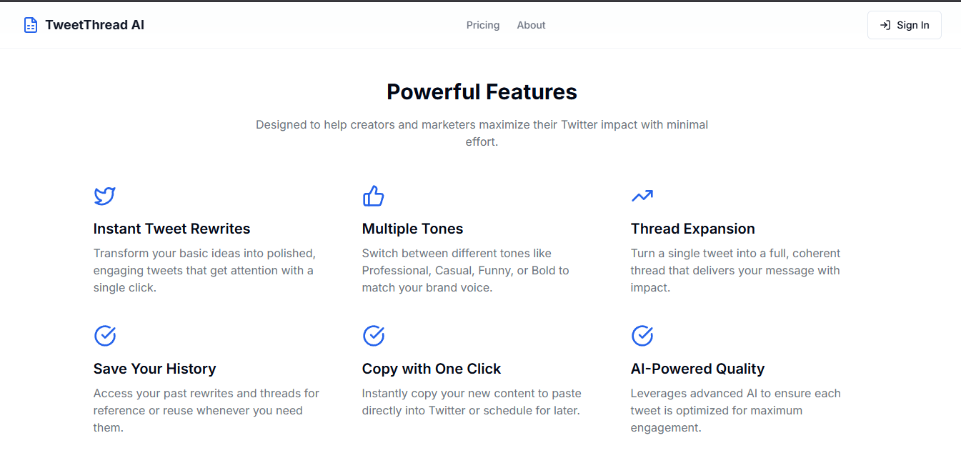 TweetThreadAI is your creative AI assistant for Twitter. Rephrase, expand, or generate threads that captivate and engage —effortlessly. Say goodbye 👋to writer’s block and hello to vibrant, original content that reflects your unique voice. Try it today! 🎉