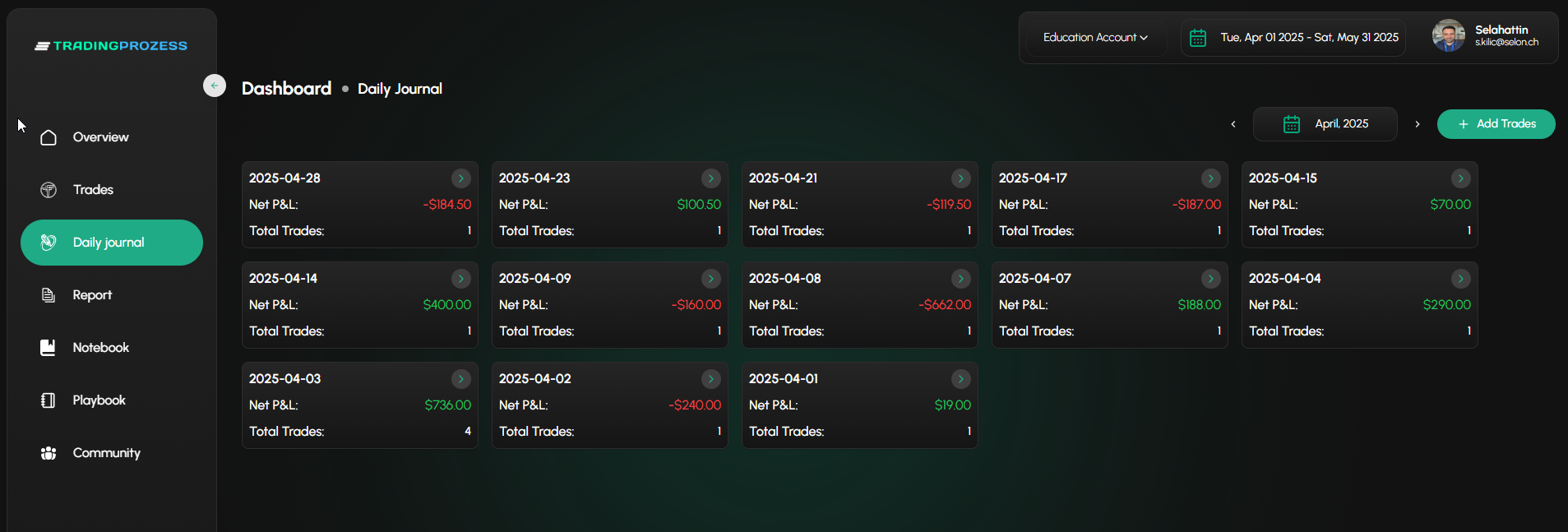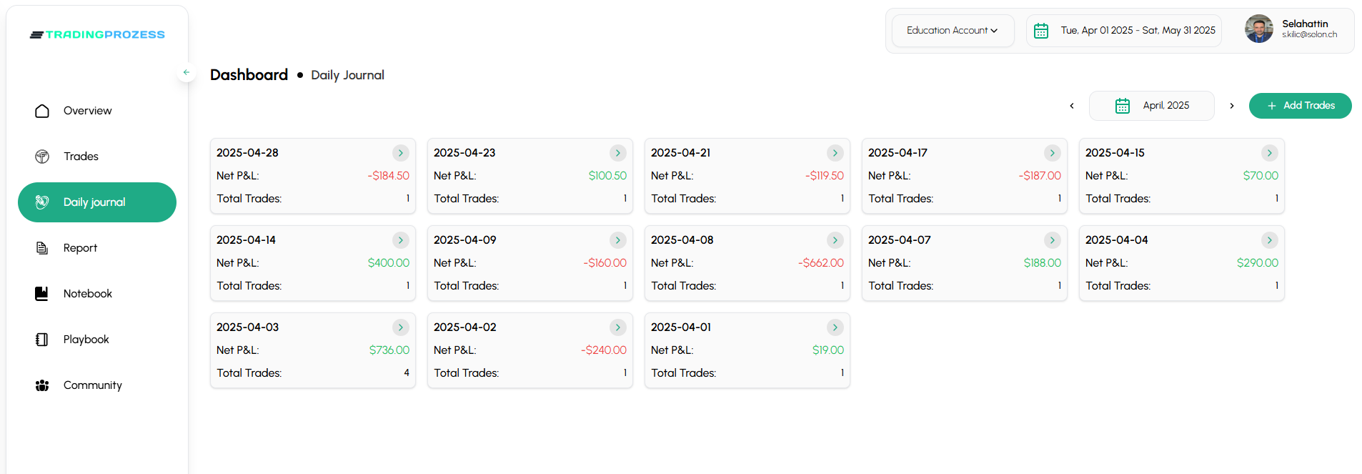 Tradingprozess is an AI-powered platform that helps traders build discipline, manage risk, and grow consistently — with smart journaling, behavior tracking, and community support. Your daily companion for better trading decisions.