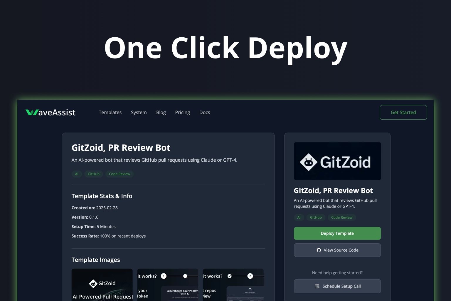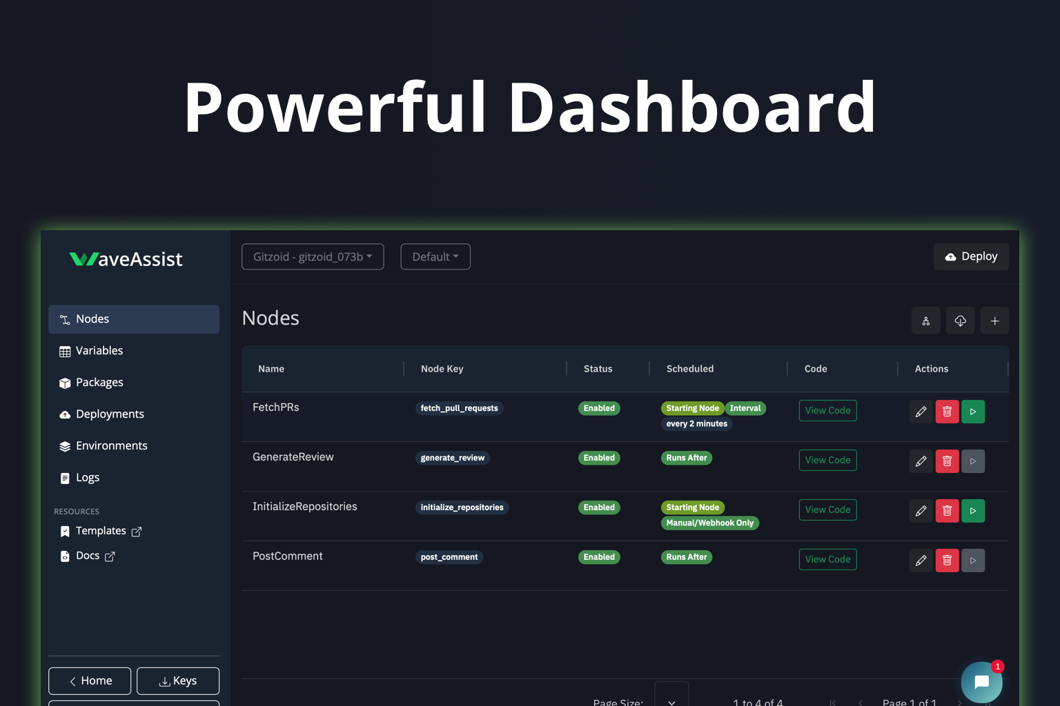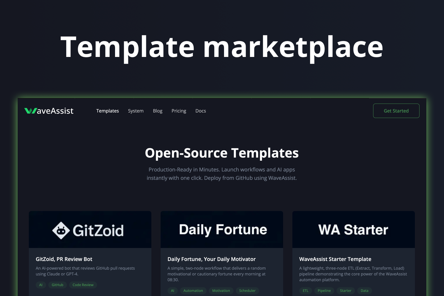 WaveAssist lets you deploy ready-made AI and data workflows—without touching servers. Pick a template, hit Deploy, and WaveAssist provisions all the code & infra for you. Dive into the code when you want or build your own flows—we scale them automatically.