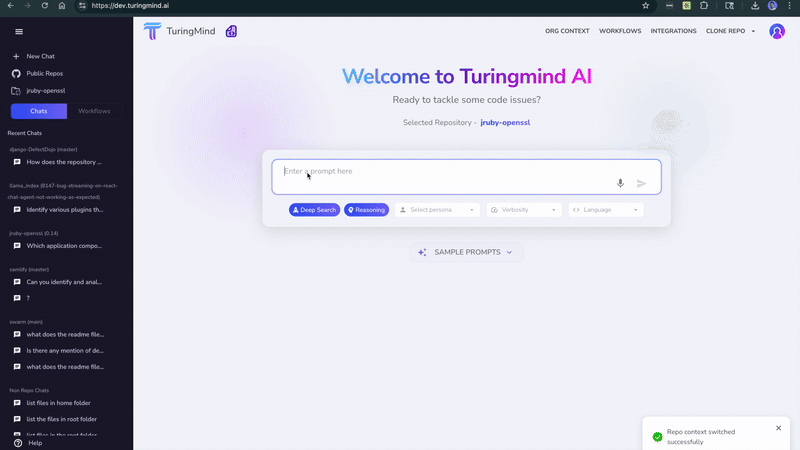 TuringMind AI is your code analysis and security CoPilot—an AI-powered researcher ready to dive into your GitHub repositories. From onboarding to code reviews and vulnerability triage, it answers questions and delivers clear insights.
