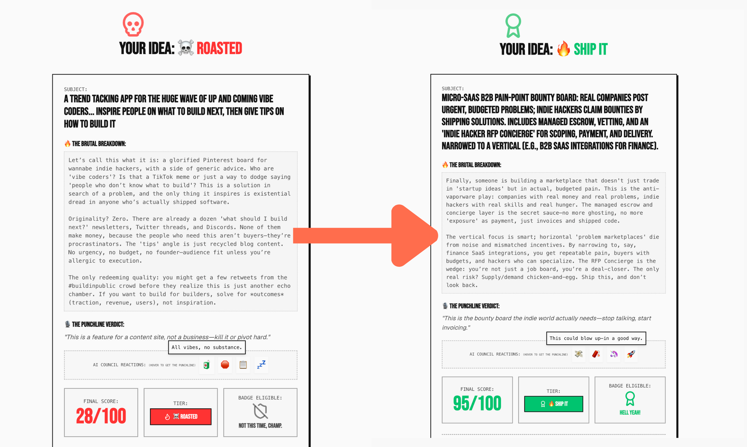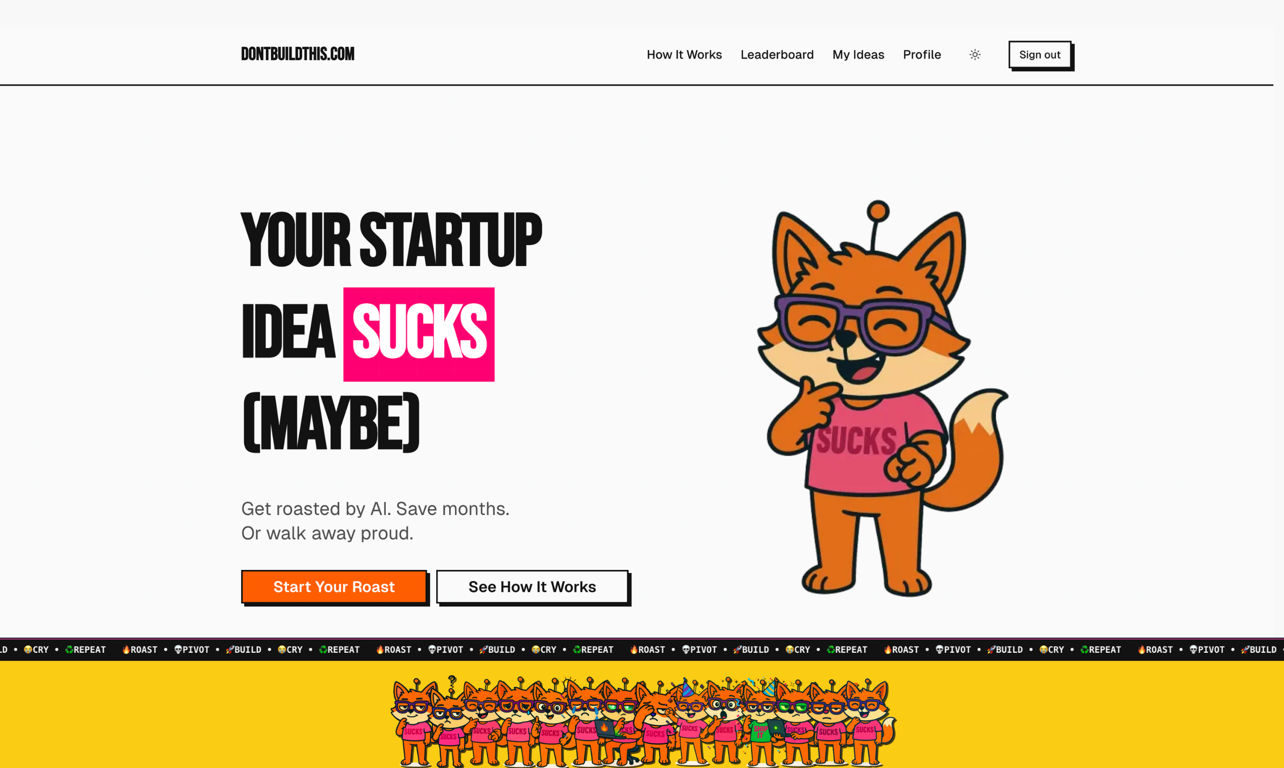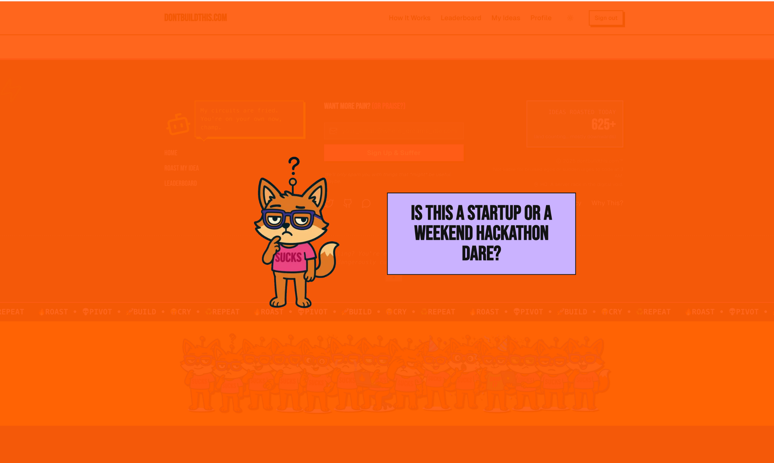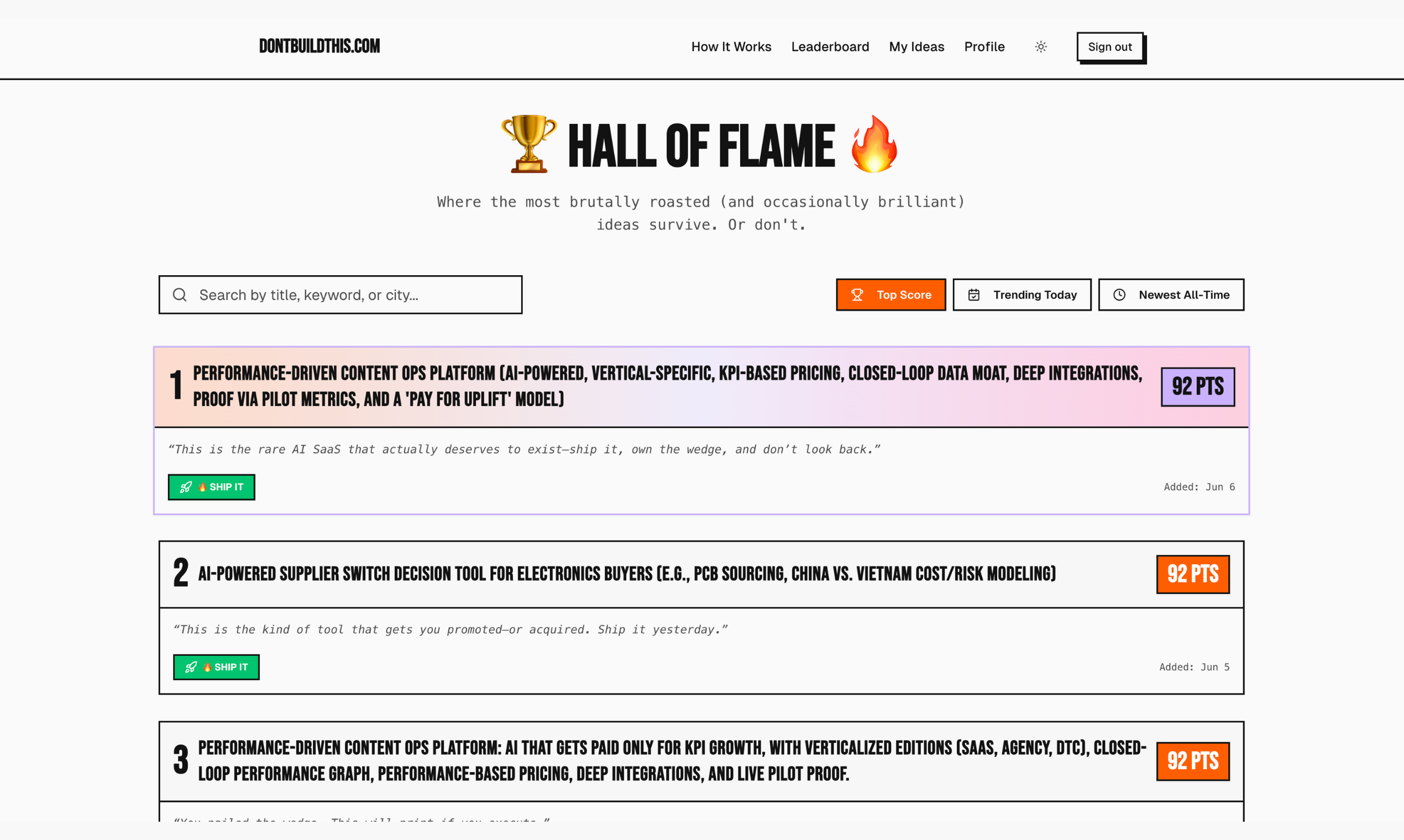 Don't build the wrong stuff. Paste an idea into dontbuildthis.com and let us roast it against live data, competitor signals + our own vault of wins/flops. You get a brutal score, verdict + tips so you can validate in mins, not months. No signup, free to use!