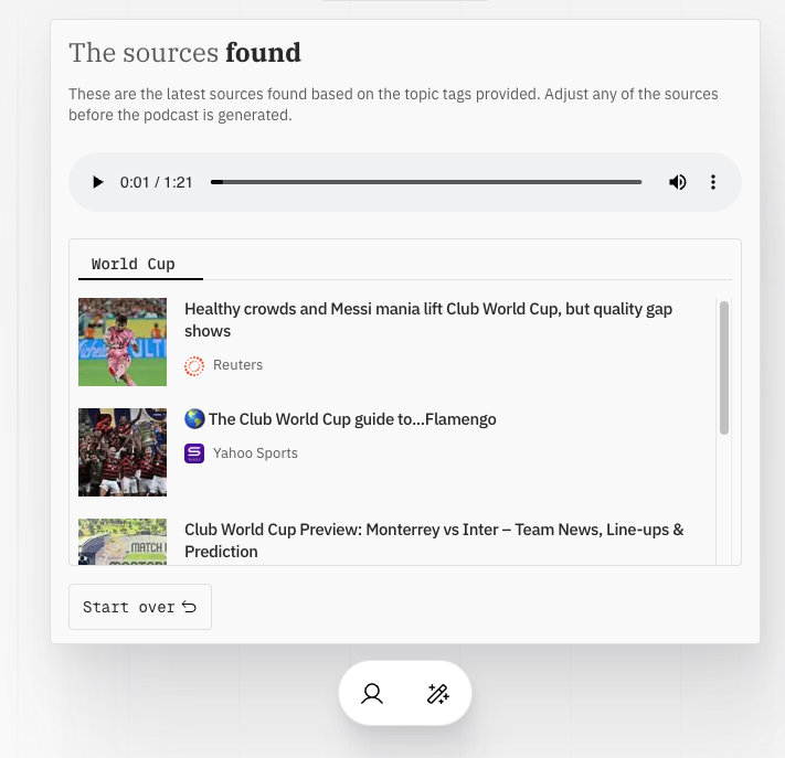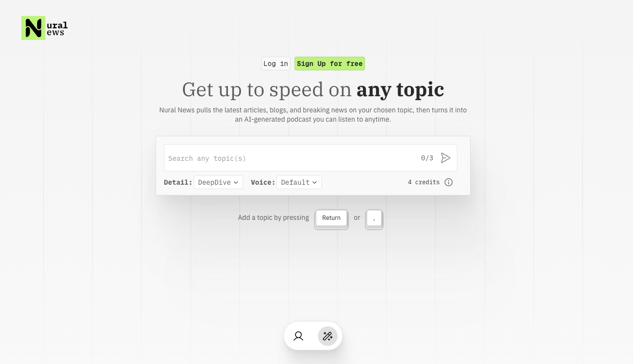 Nural News 会抓取您所选主题的最新文章、博客和突发新闻,然后将其转化为由AI生成的播客,供您随时收听。
