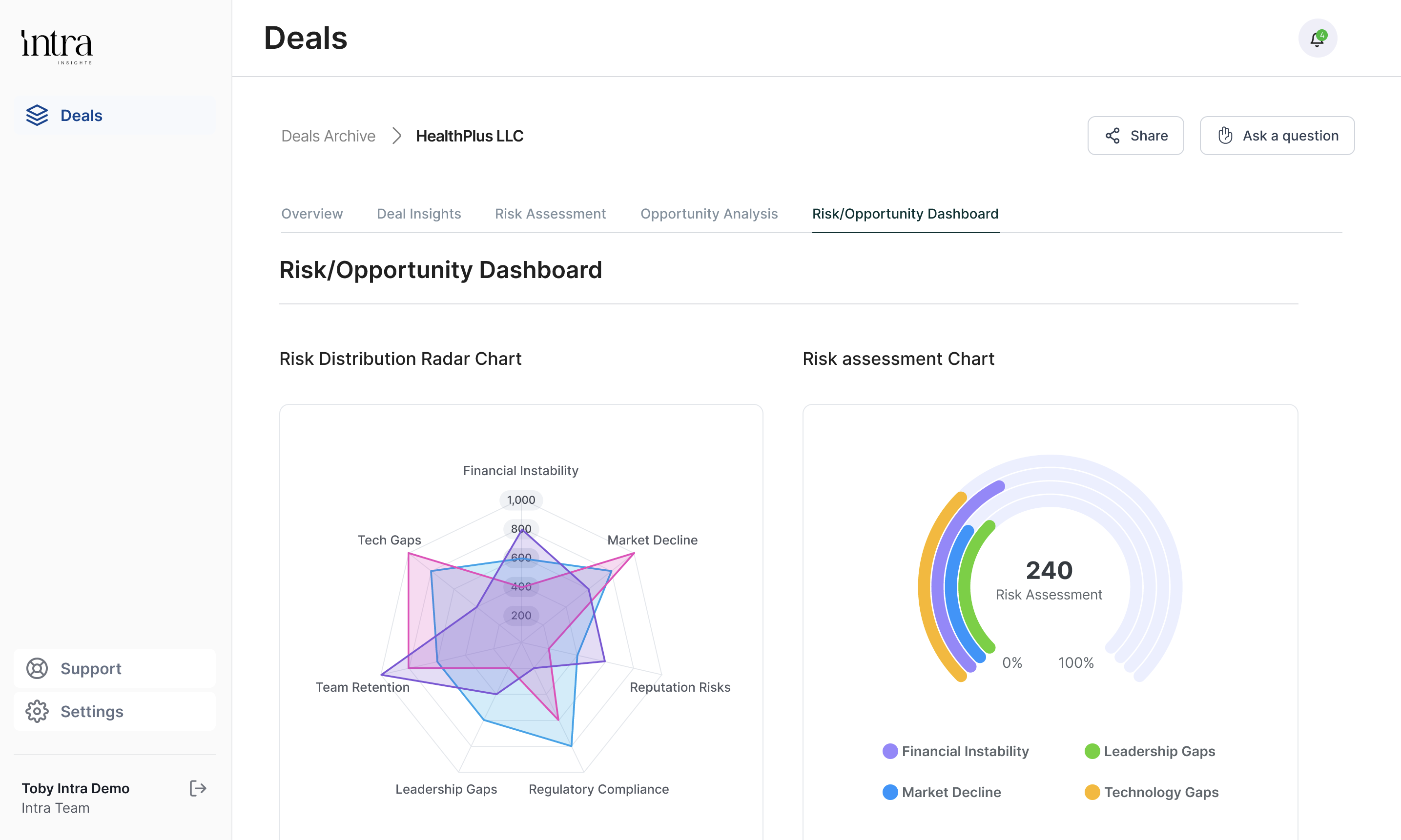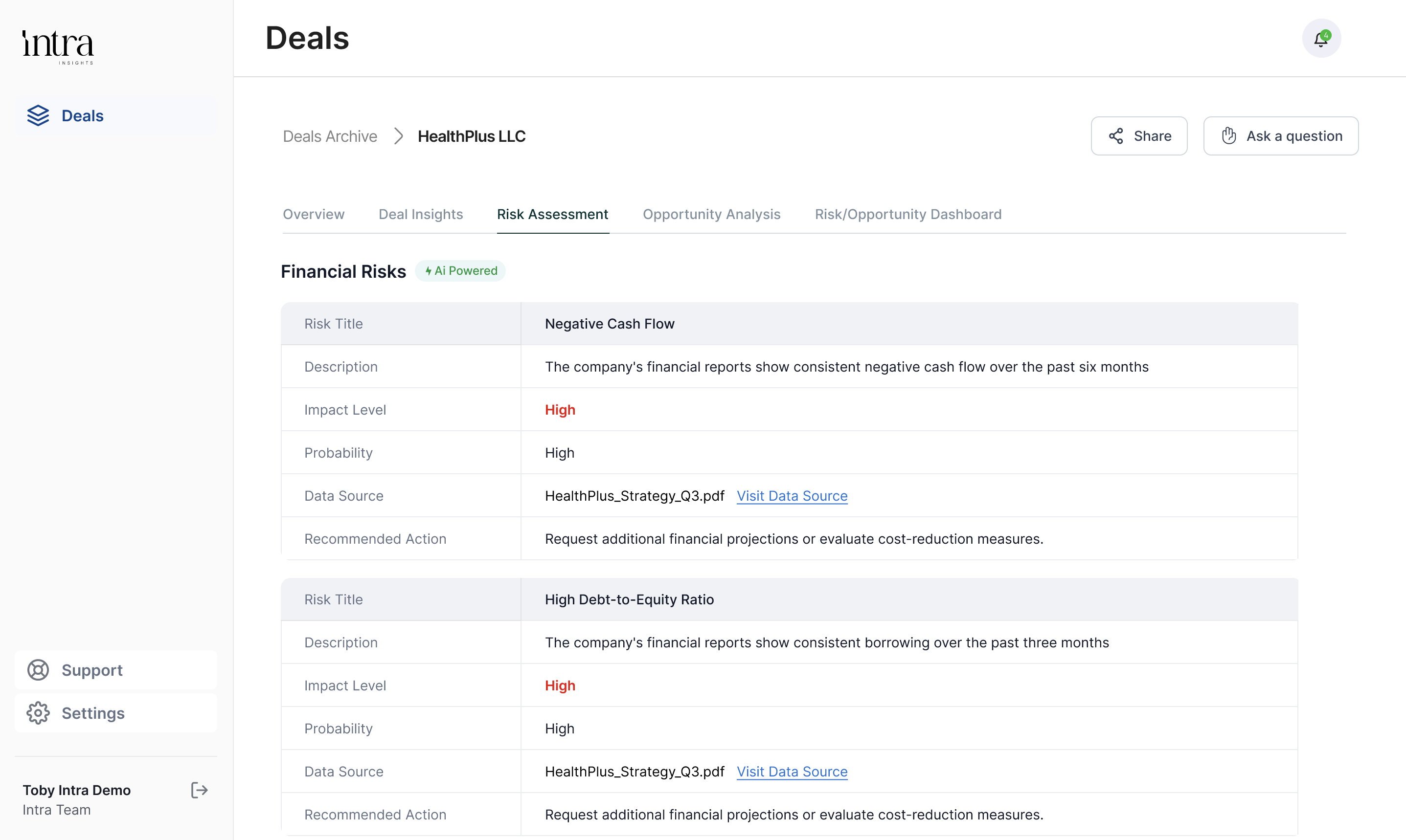 Intra is an AI-powered analysis tool that helps VCs save hours on due diligence and instantly uncover risks. Automate data collection, integrate real-time market insights and generate deal analysis—all while staying in control of your investment decisions.