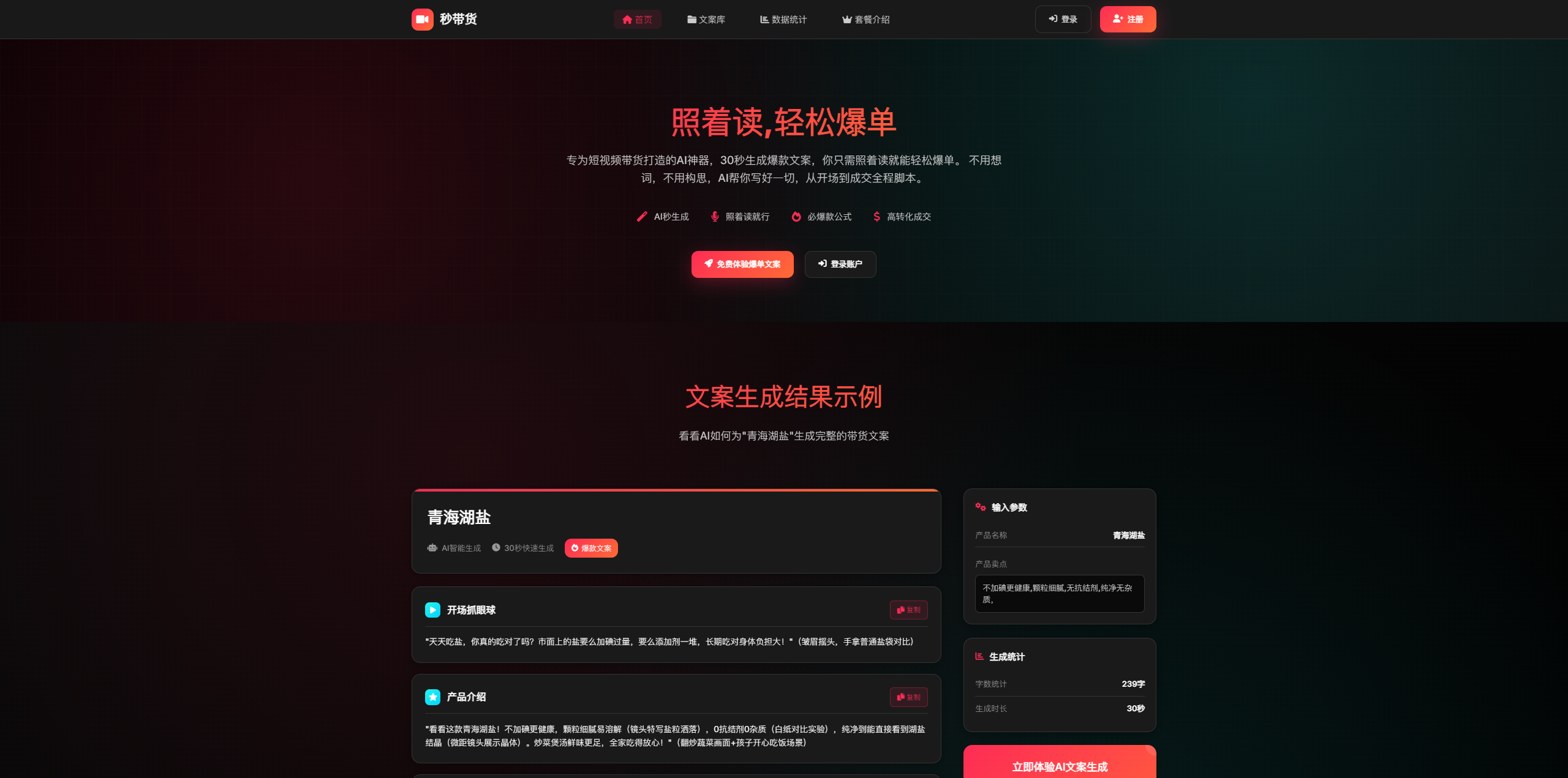 专为短视频带货打造的AI神器,30秒生成爆款文案,你只需照着读就能轻松爆单。