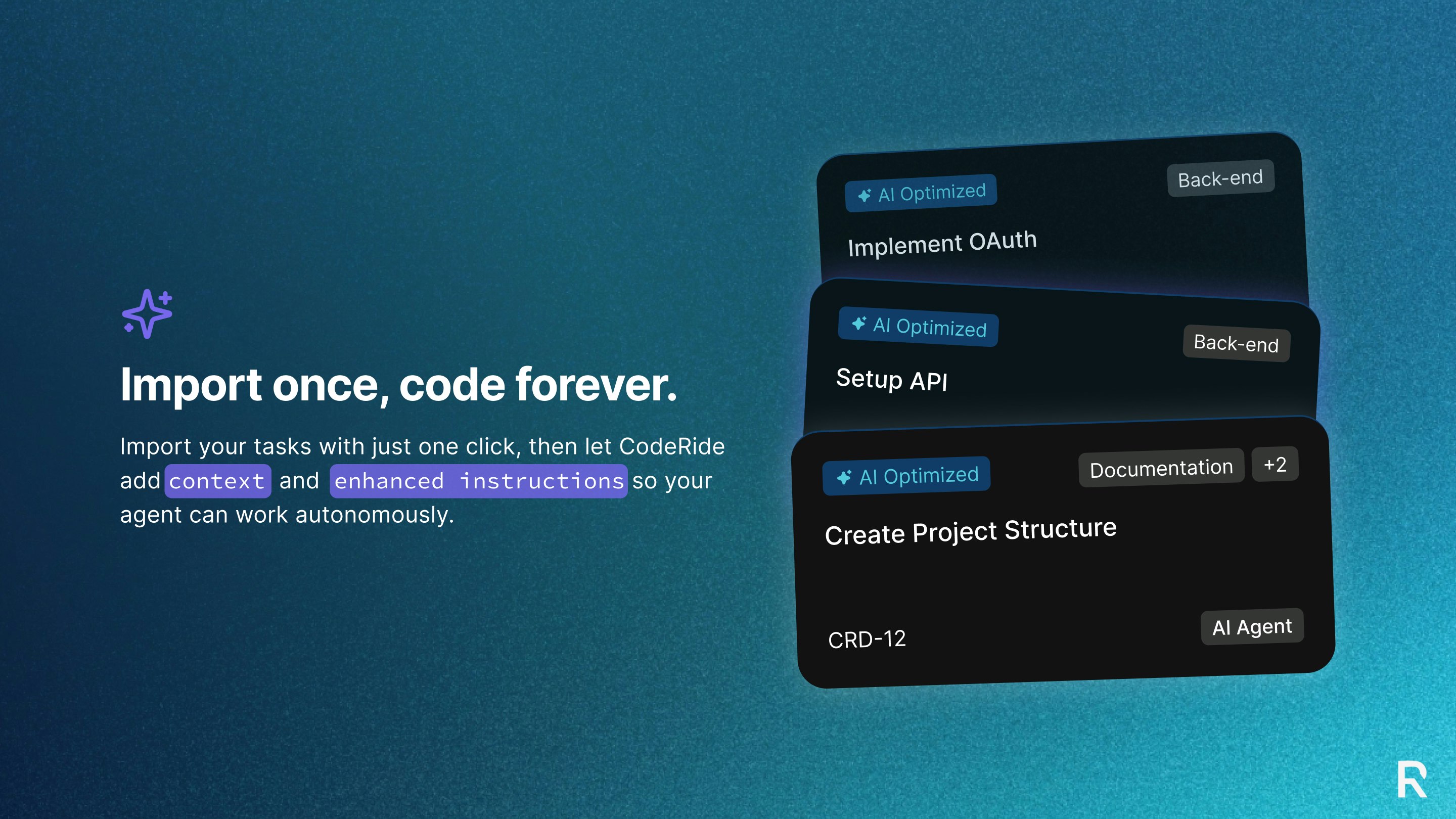 CodeRide 为AI智能体赋予完整的上下文感知能力和强化指令功能。无需重复解释——只需无缝执行任务、智能生成代码,并通过与工作流程的轻松集成实现更快速的开发。