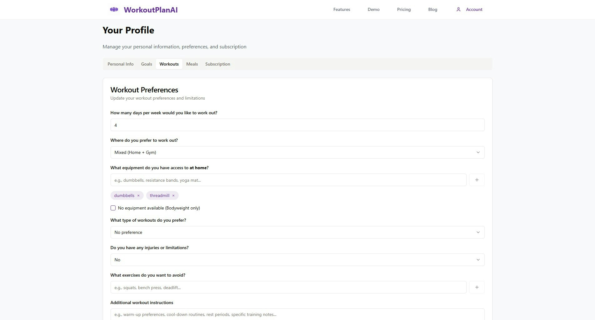WorkoutPlanAI is a fitness platform enabled by an AI-Agent that creates fully personalized workout and meal plans tailored to your goals, preferences, restrictions and lifestyle. Unlike generic programs, it continuously adapts and learns as you progress.