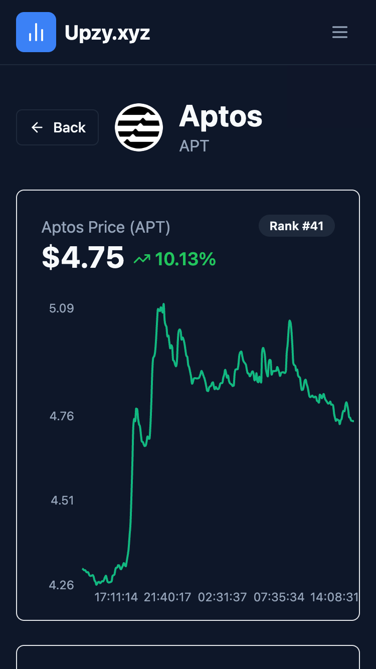 Upzy is a swipe-based prediction game where you guess if top coins will go up or down in the next 30 seconds, 1 minute, or 2 minutes. Inspired by the Tinder and the thrill it makes following crypto trends fun. Connect your wallet and start swiping!