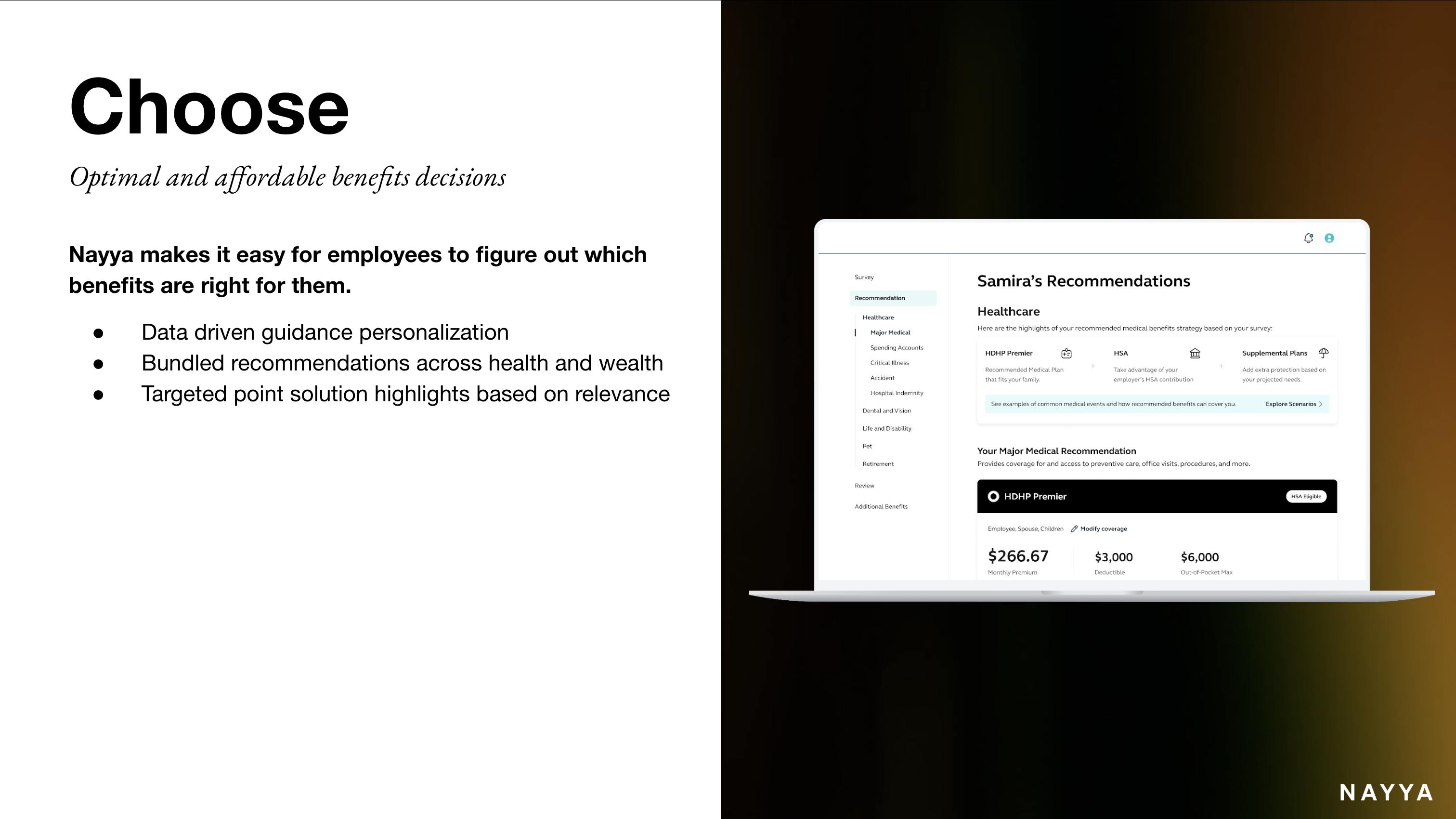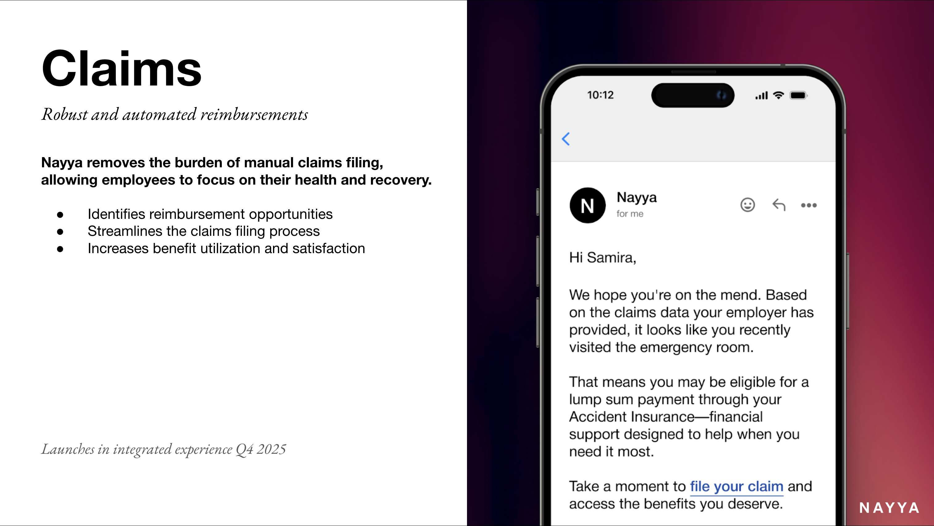 在医疗索赔被拒绝的情况下,Nayya索赔倡导者能轻松帮您从健康计划中追回应得的款项。只需上传您的拒付信,我们的智能AI工具就会为您整理个性化的申诉材料包。