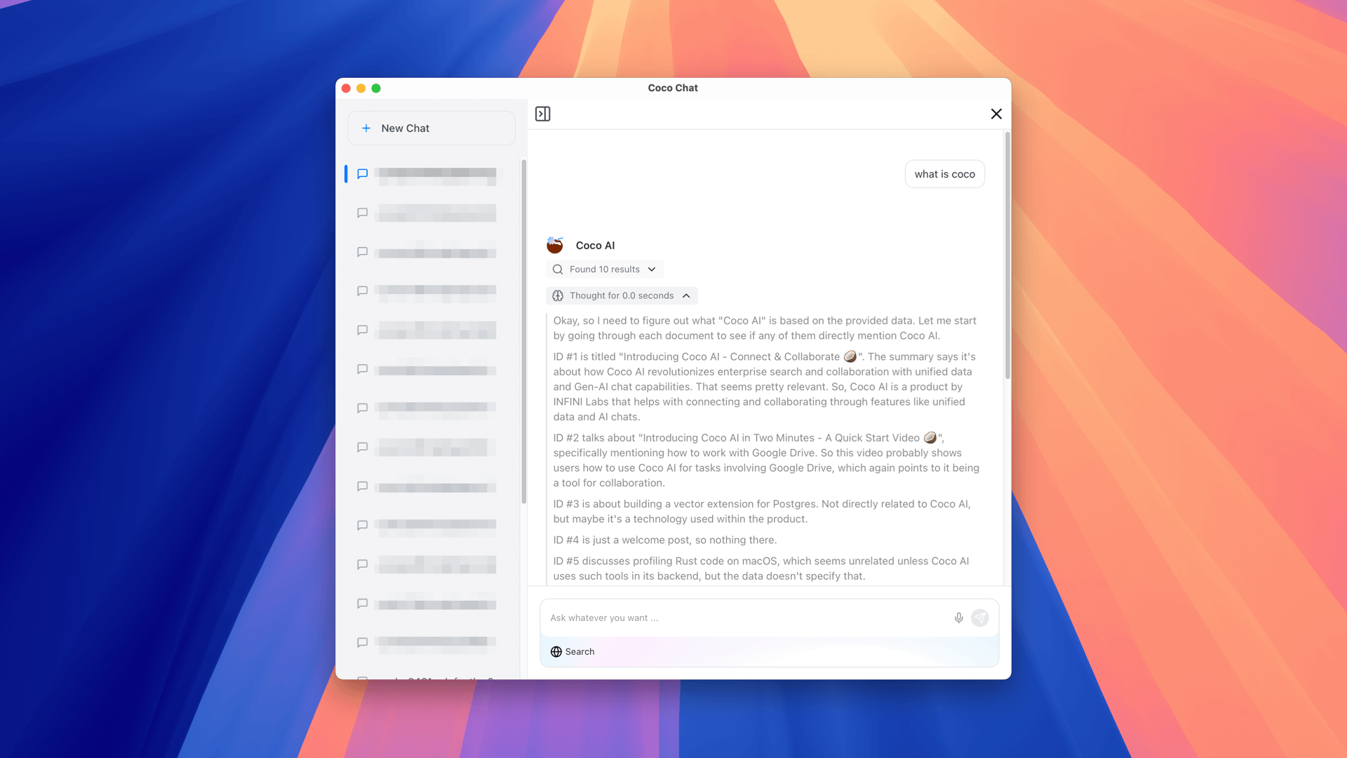 Coco AI is a unified search platform that connects all your enterprise applications and data—Google Workspace, Dropbox, Confluent Wiki, GitHub, and more—into a single, powerful search interface.