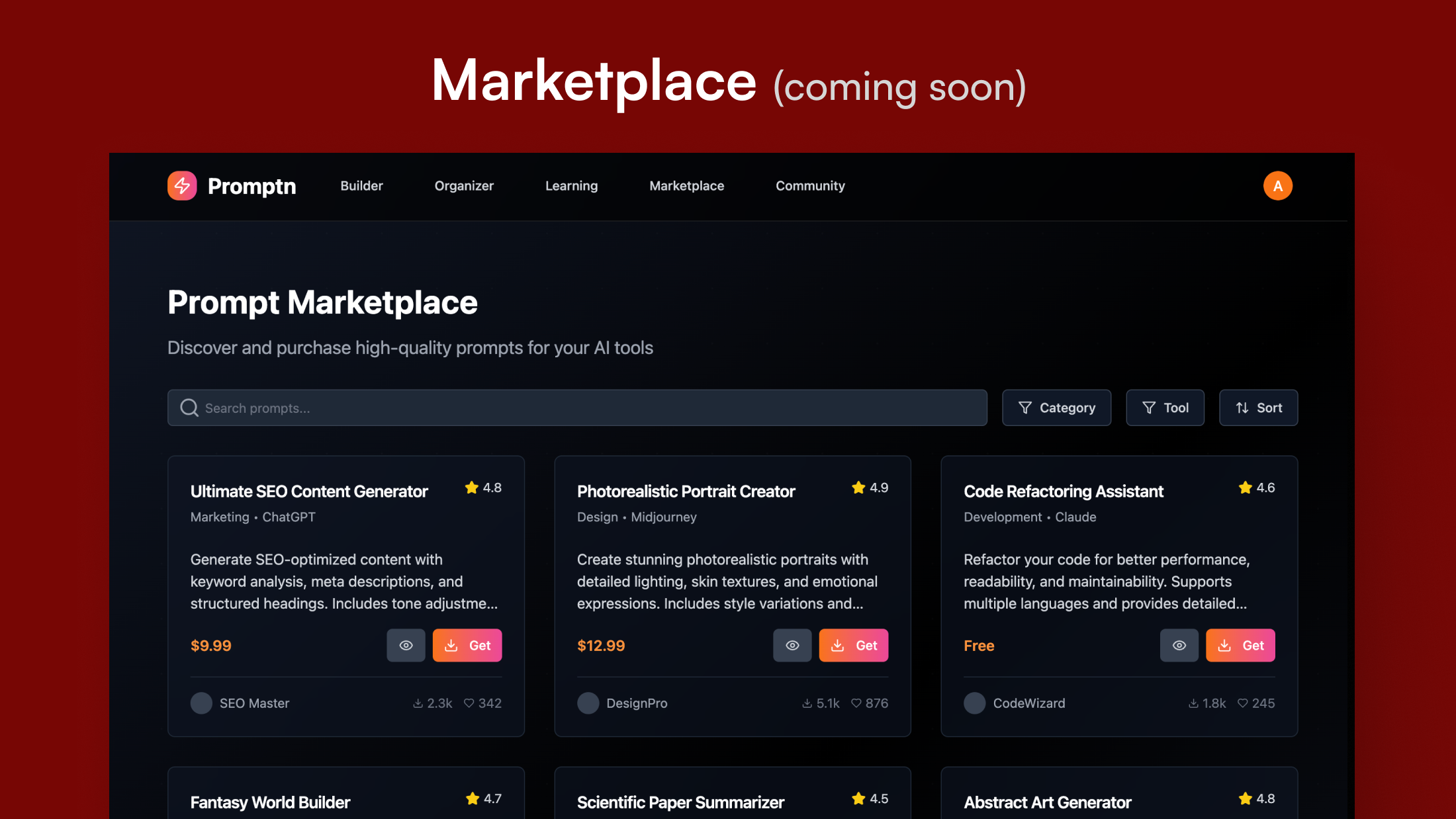 PromptN is the all-in-one Prompt command center built for non-technical professionals i.e: marketers, educators, small-business owners who want powerful AI outputs without wrestling with confusing model syntax. Built, Organize and sell prompts in one place.