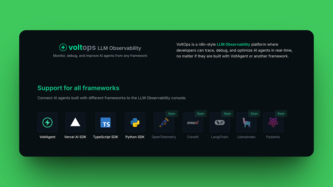 VoltOps is a developer-first observability platform for AI agents. Built to trace, debug, and monitor agent workflows with full context. Gain complete visibility into your AI systems with structured traces, rich logs, and an n8n-style visual interface.