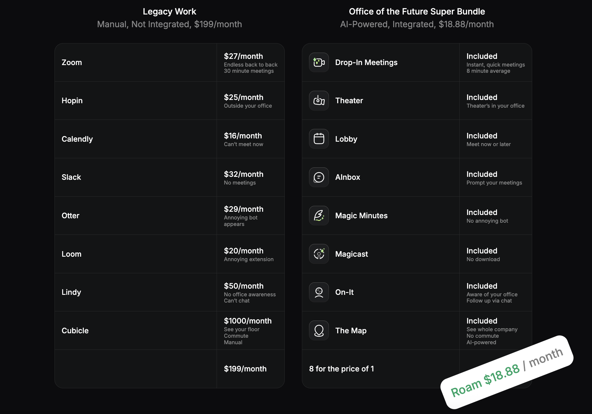 On-It brings the power of bleeding-edge AI productivity to your company. Like a real office admin, On-It can observe your office, schedule meetings, follow up with messages and chats, and much more. On-It is the 8th feature in Roam's 8 for 1 Super Bundle.