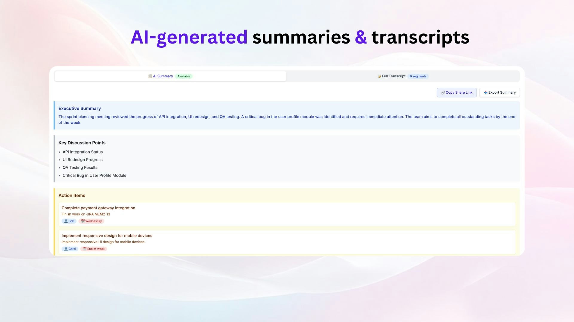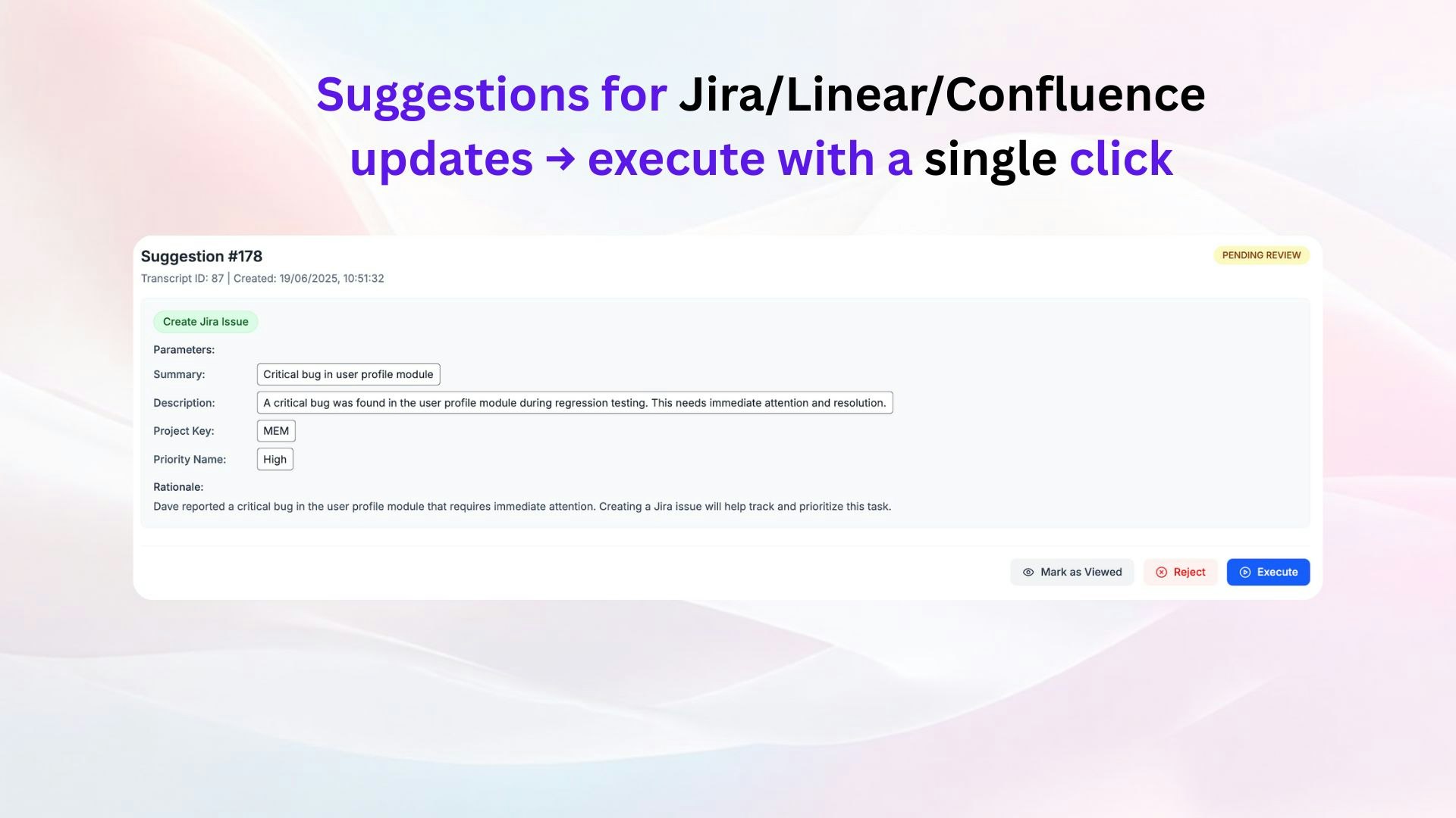 Memolect is your AI notetaker for dev teams - joins virtual meetings, transcribes, and suggests Jira, Linear & Confluence updates you can execute with a single click. Includes AI summaries and ChatGPT-style search to recall decisions instantly.