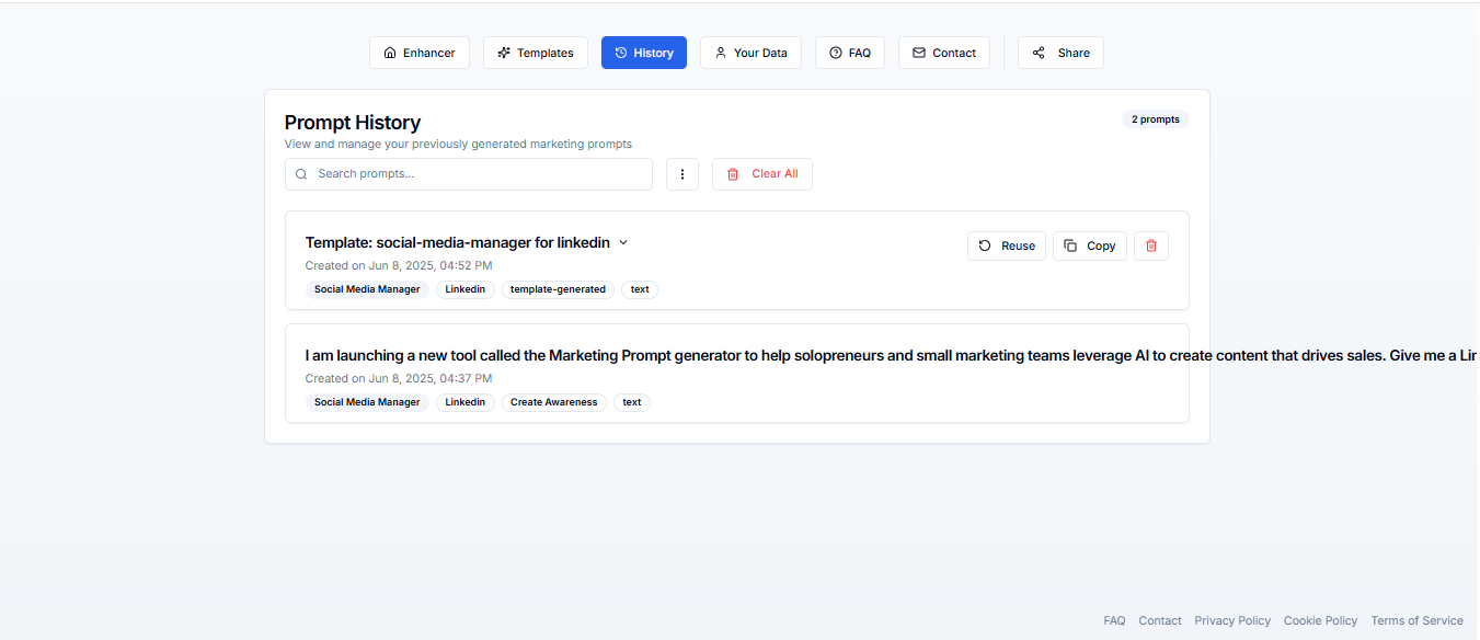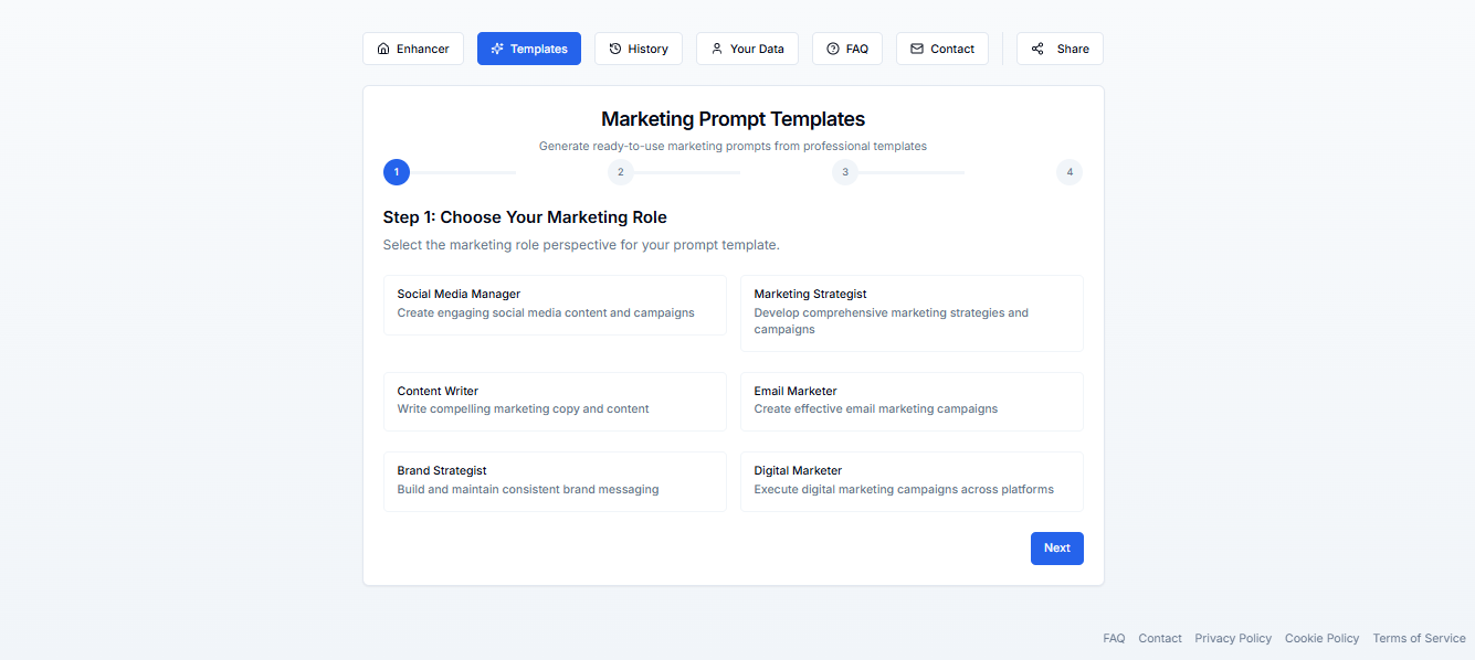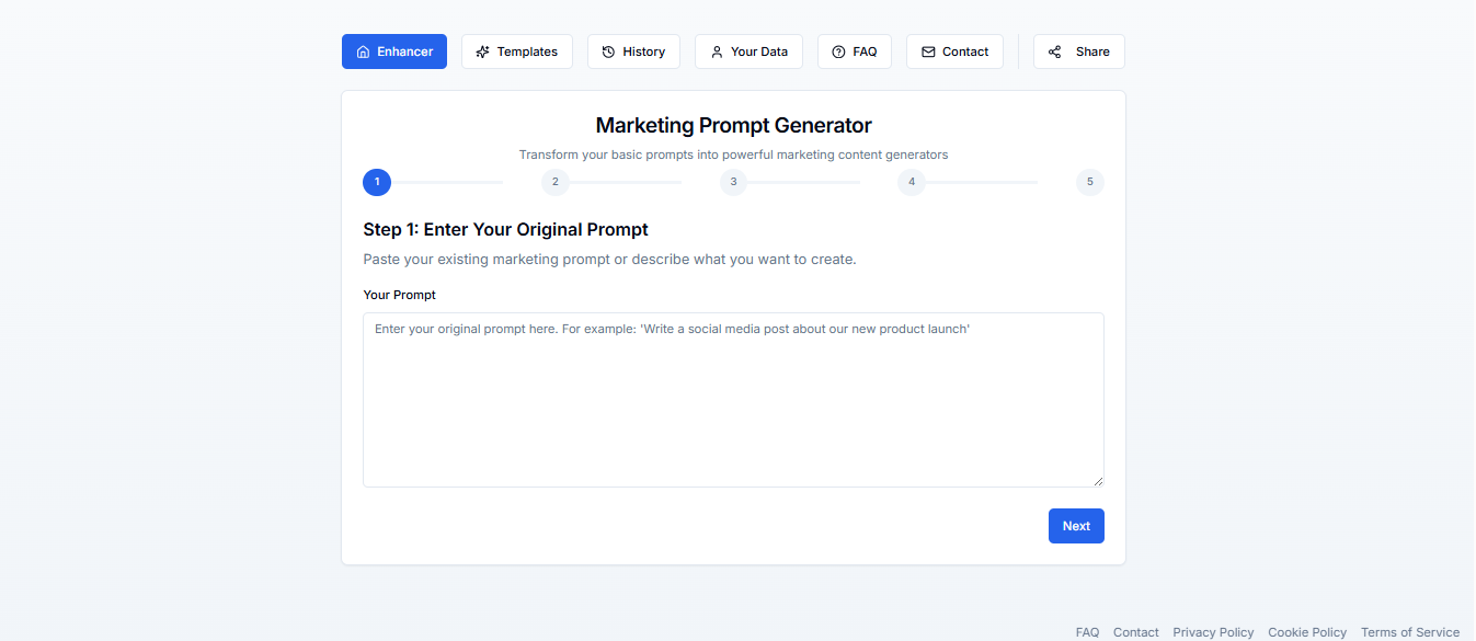 Marketing Prompt Generator helps solopreneurs, marketers, and creators instantly generate high-converting hooks, emails, social posts, and campaign ideas—so you can skip the blank page and start building momentum, fast. No frills, No Fuss, Just results!