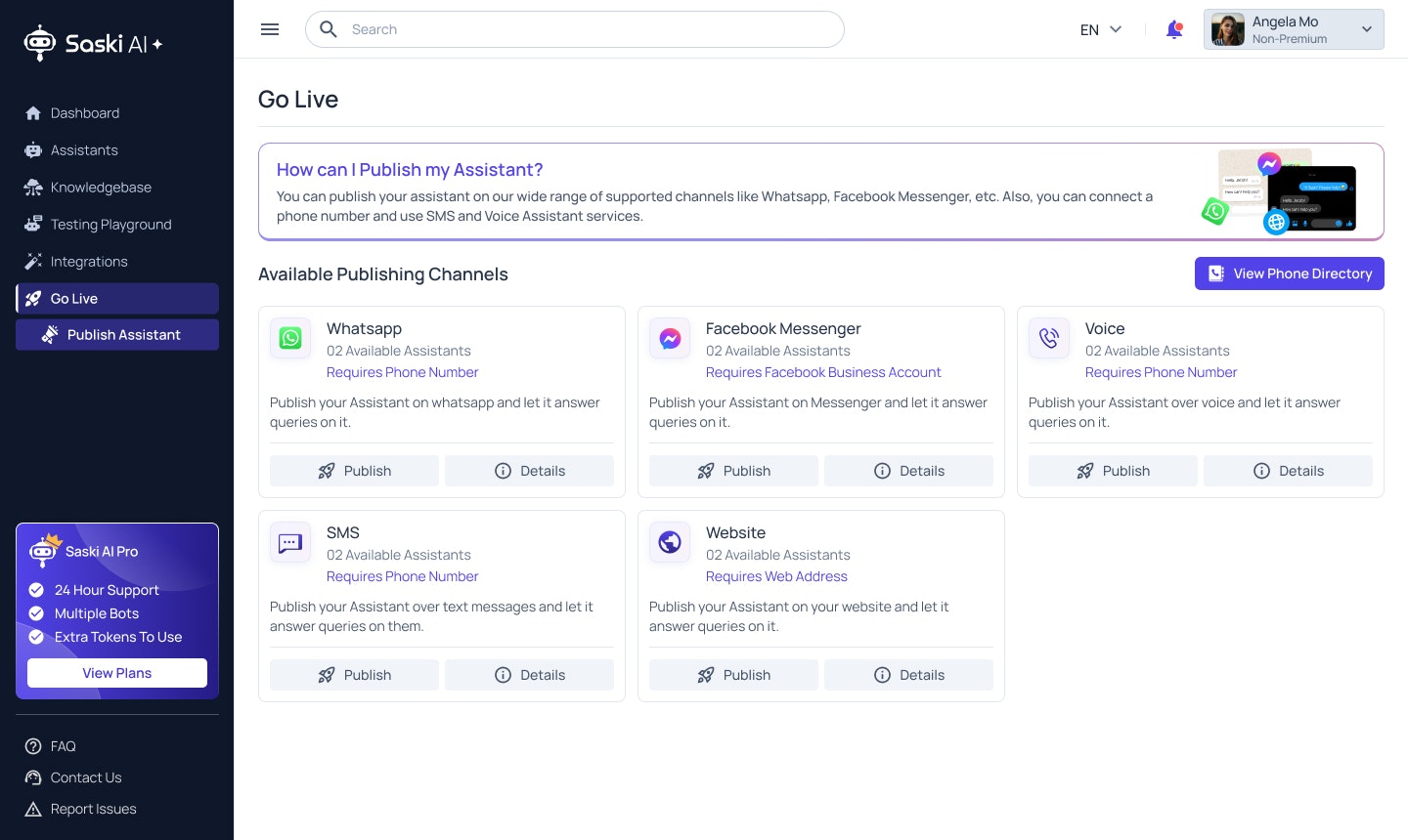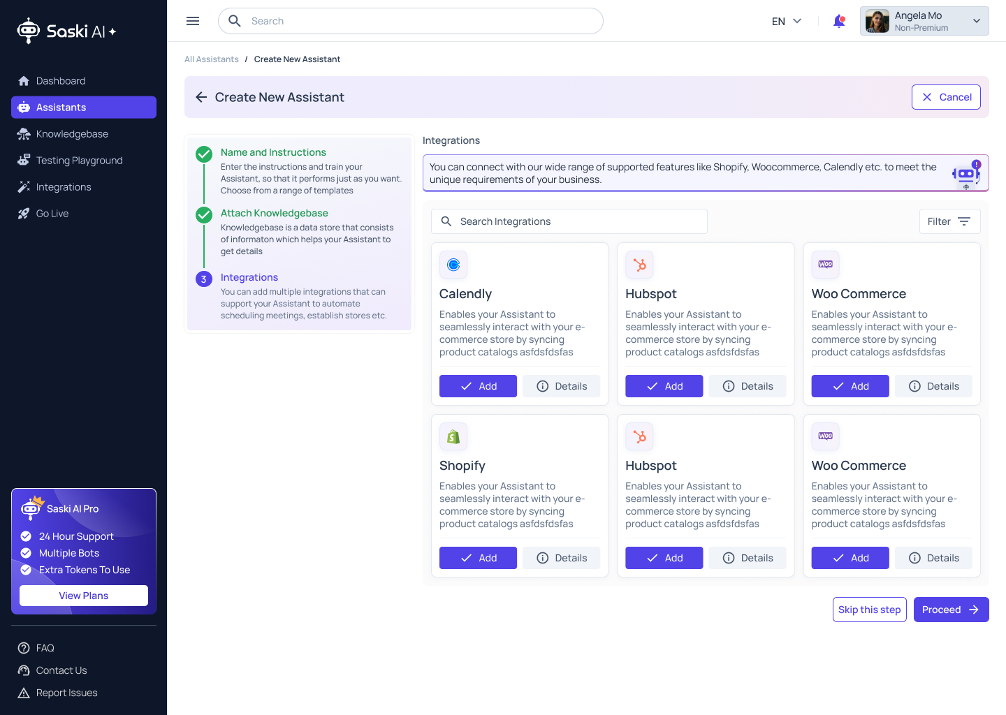 Saski AI helps small businesses automate customer support with no code. Build AI agents in minutes, connect to your online store, CRM, helpdesk, & calendar then deploy across WhatsApp, SMS, Messenger, voice, and web to deliver 24/7 customer service.