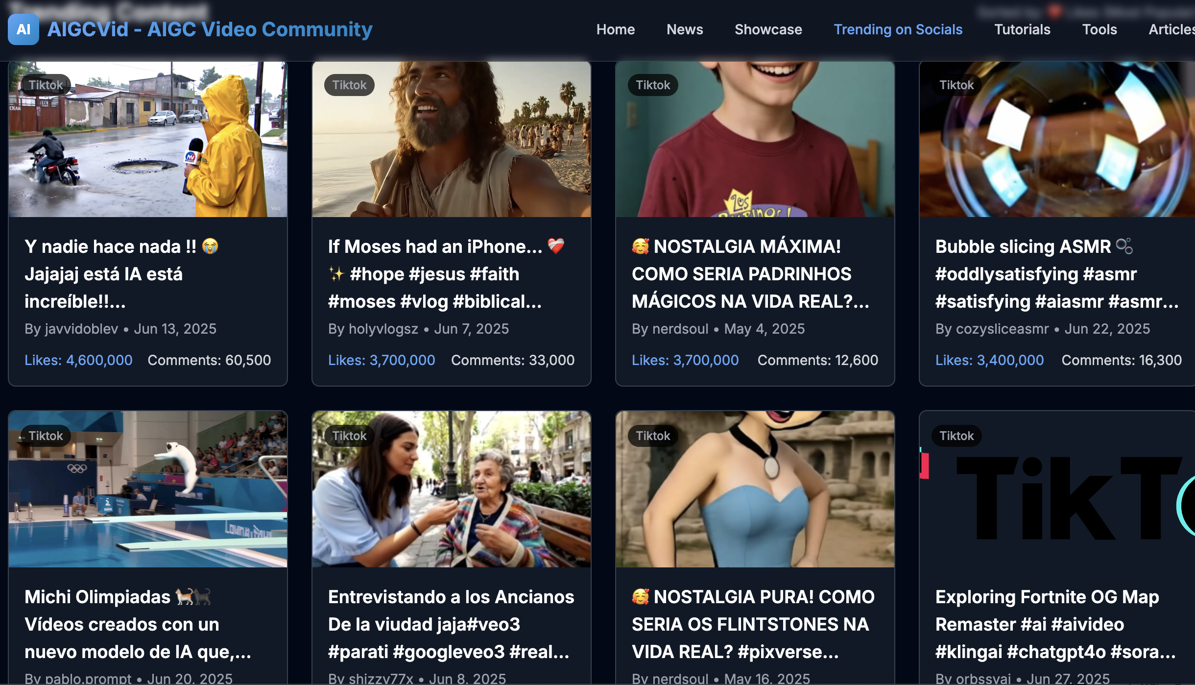 AIGCVid aggregates breaking AI video model updates, showcases viral & trending clips, and featured tutorials—all in one clean, navigable site. Whether you're testing new models remixing TikTok trends, or building your first AI video, AIGCVid has you covered.