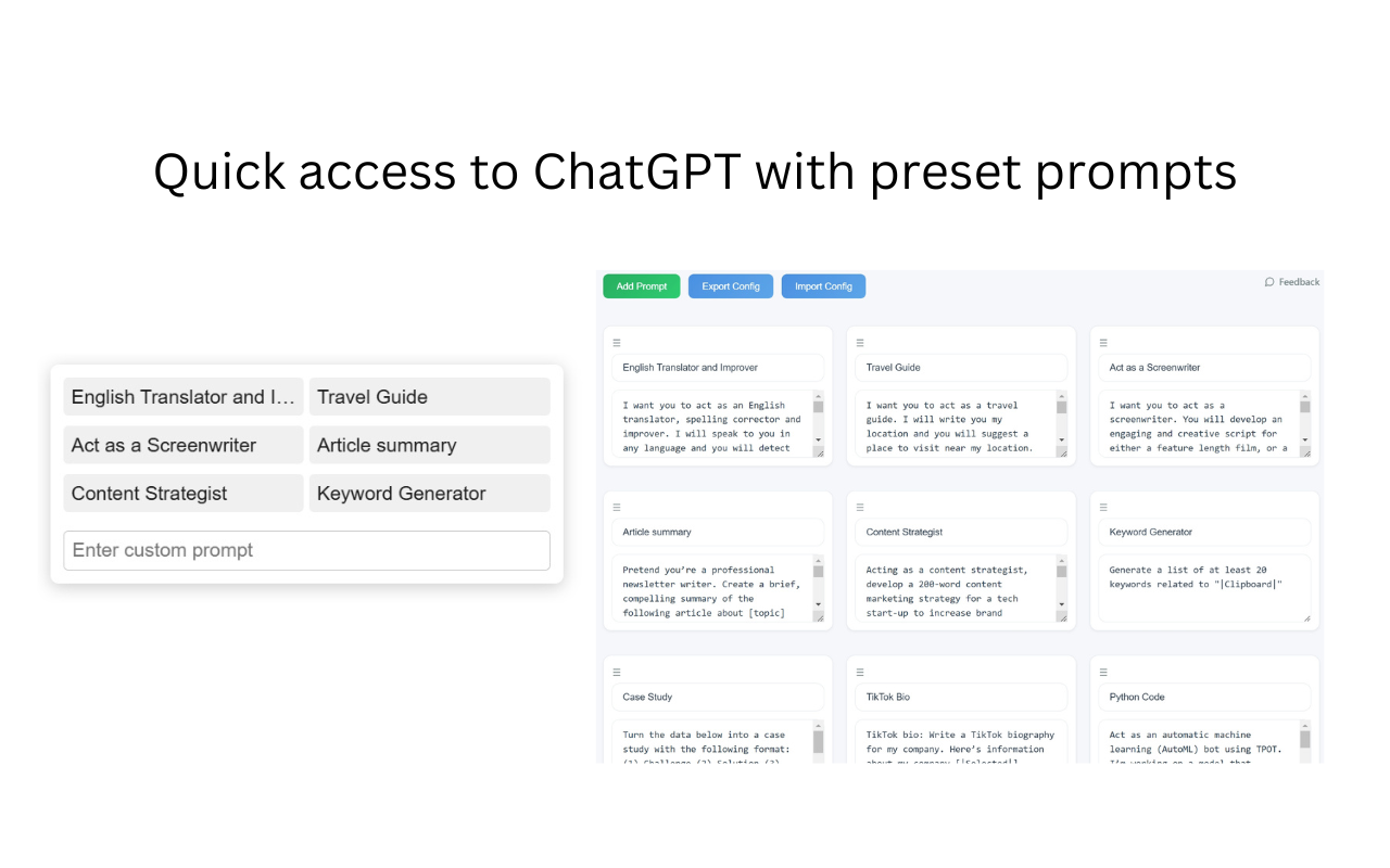 快速访问ChatGPT,预设提示词与尊享功能