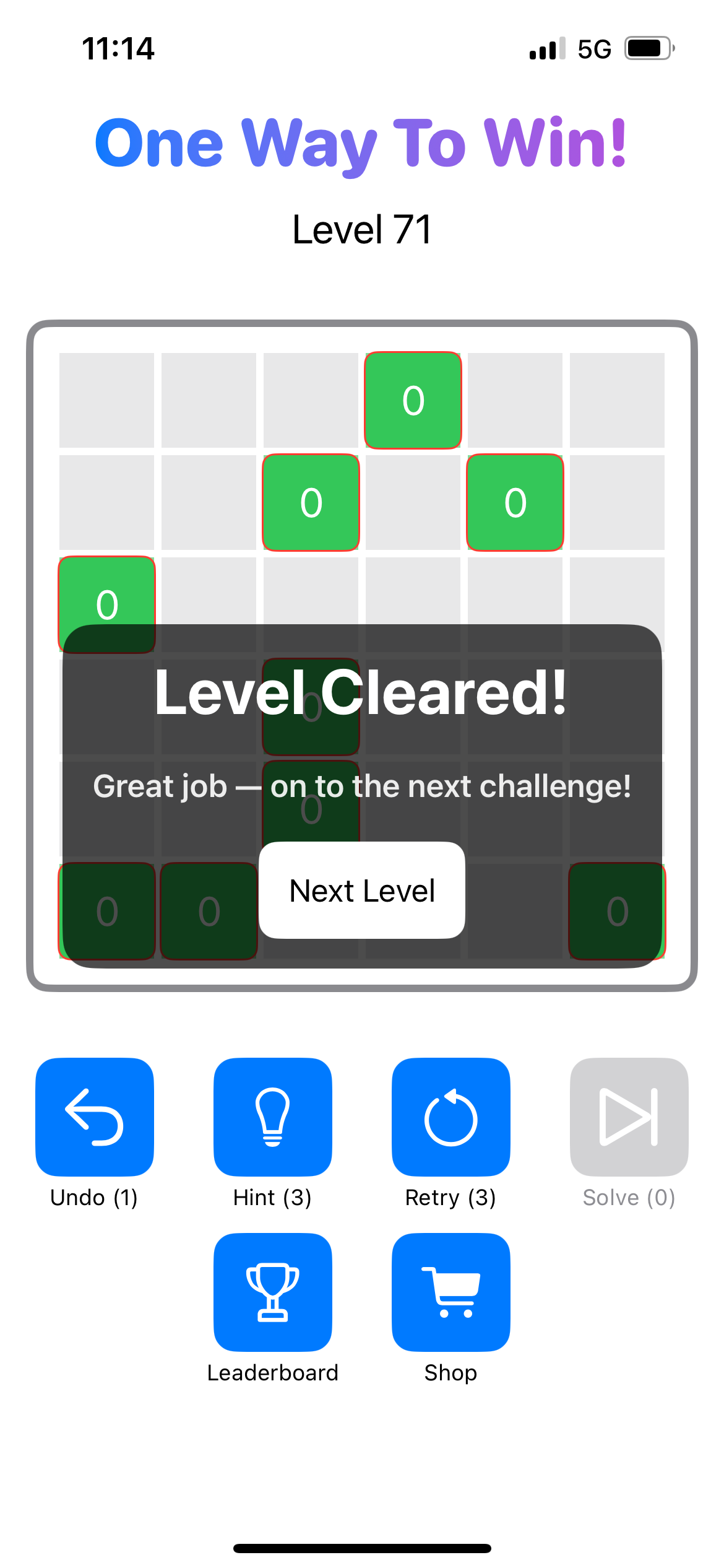 A clean, logic-based iPhone puzzle game where each move matters. I built the entire thing solo with ChatGPT. Every tile moves the number it shows. Reduce it to zero, land on the target, and win. Simple idea — surprisingly tricky to master.