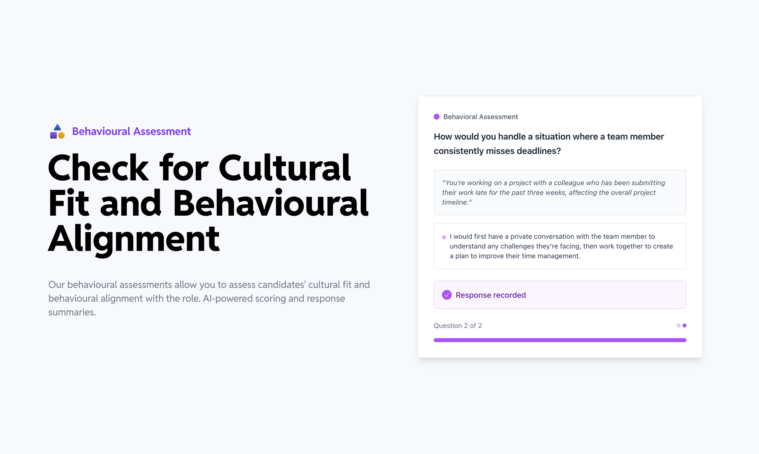 RepScout is a platform that seeks to provide all job seekers with an opportunity to demonstrate their abilities through AI-powered assessments. We strive to address the issue of talent being overlooked amid the sea of AI-enabled candidates.