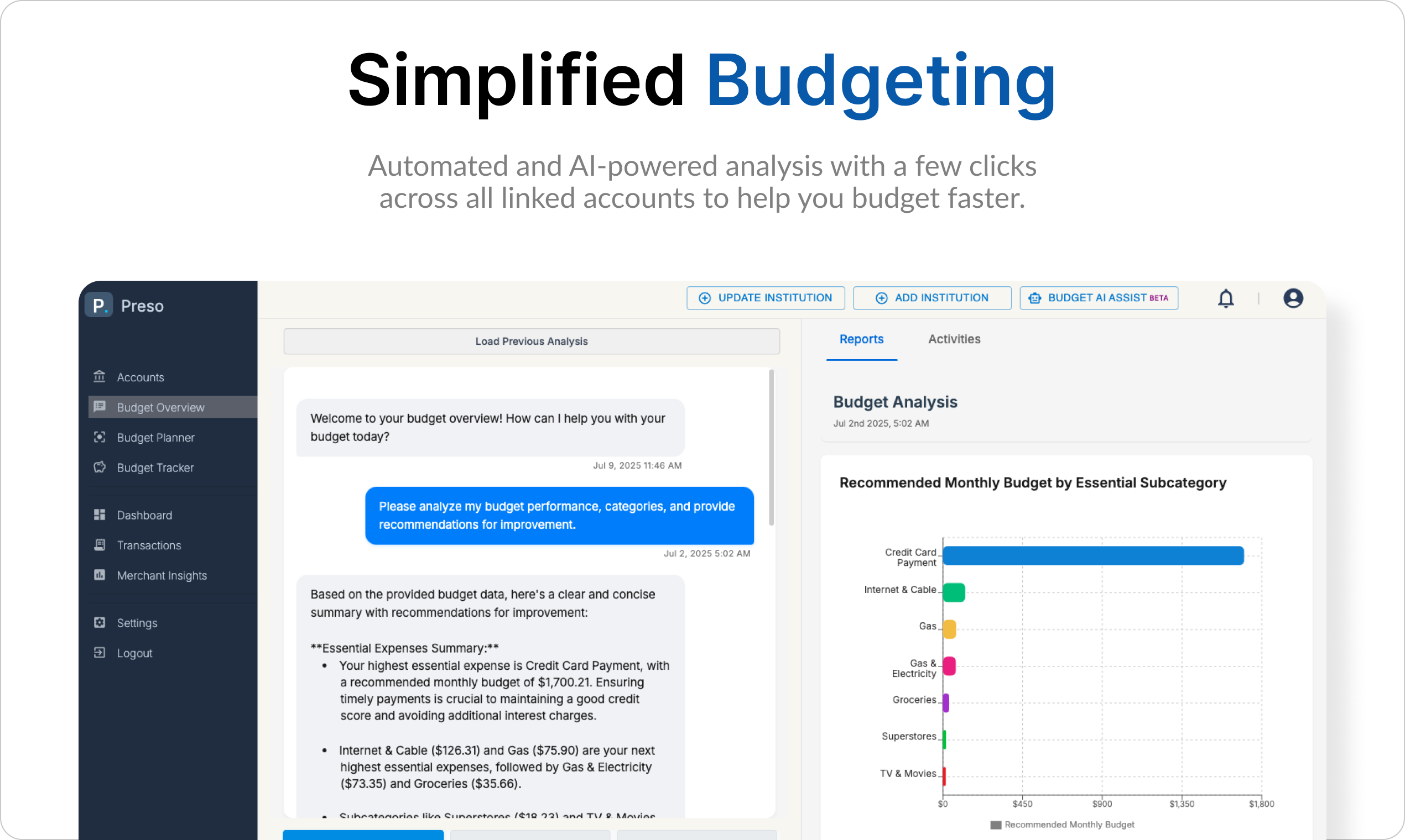The hardest part of saving money is understanding your spending habits and taking control. Our automated and AI-powered budgeting platform gives you a 360 view of your finances and autogenerates a customizable framework for you to take control of your money.