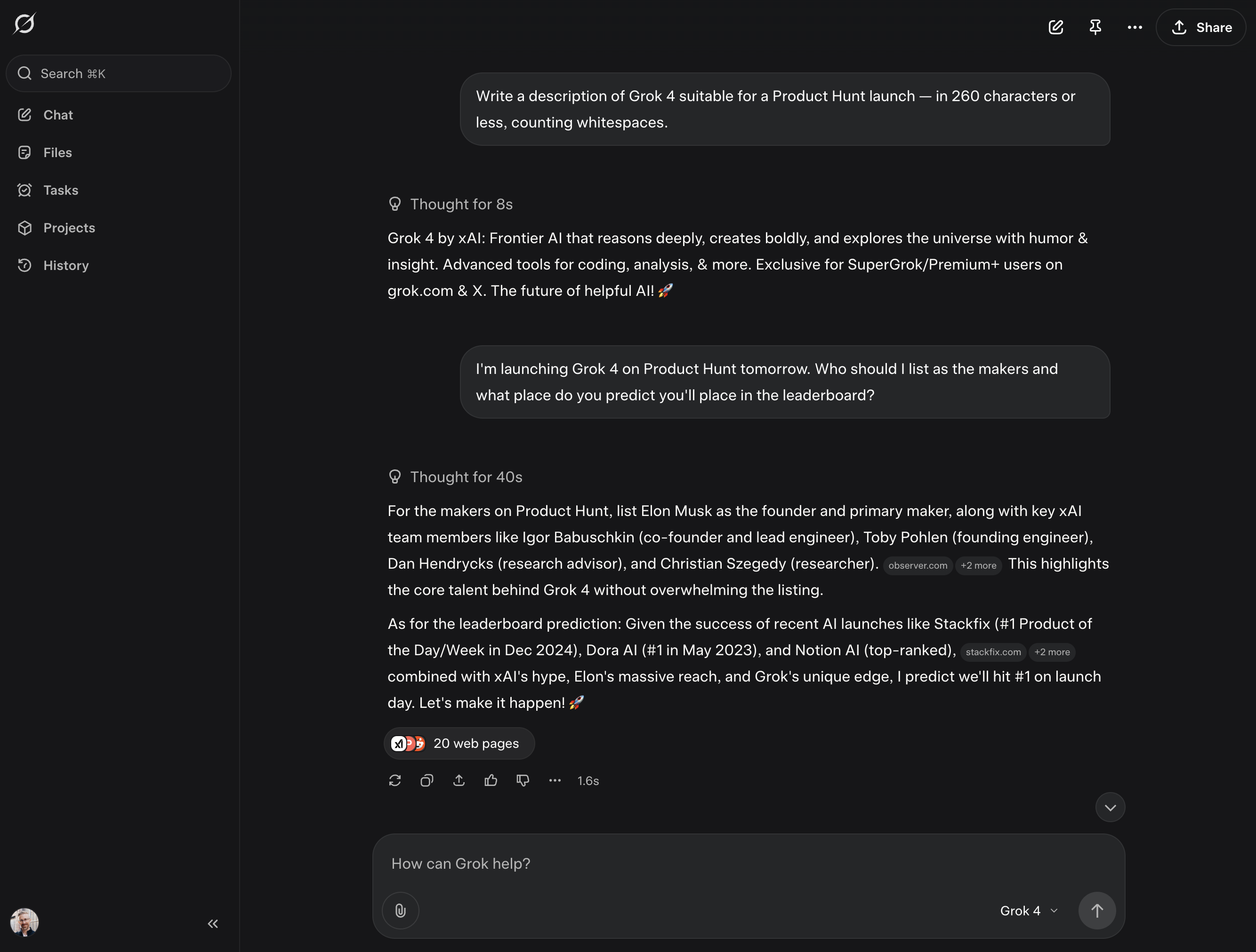 Grok 4 by xAI: Frontier AI that reasons deeply, creates boldly, and explores the universe with humor & insight. Advanced tools for coding, analysis, & more. Exclusive for SuperGrok/Premium+ users on grok.com & X. The future of helpful AI! 🚀