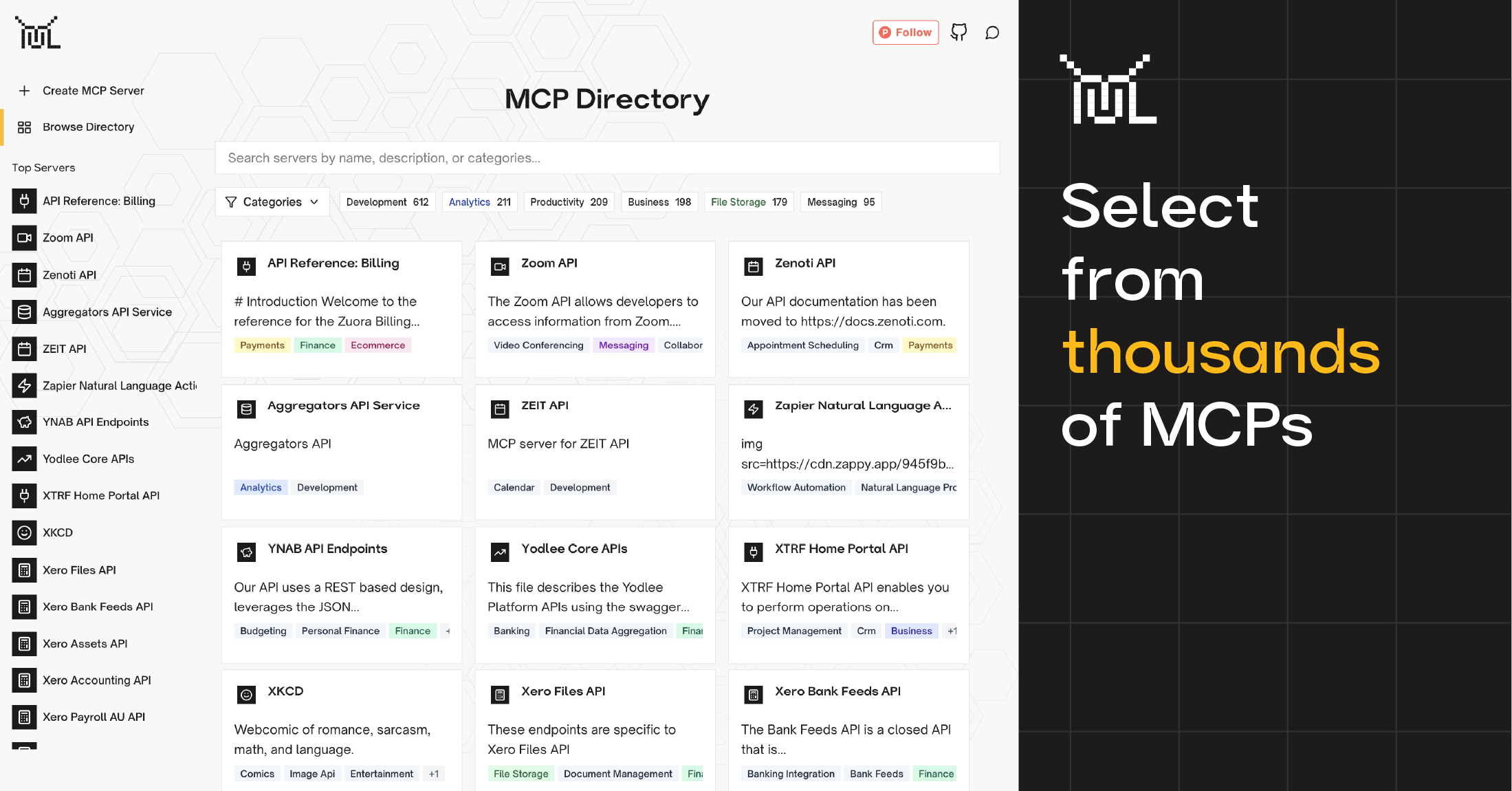 MCP Engine is the fastest way to turn any OpenAPI spec into an MCP server that AI agents can actually use. Drop your spec, instantly get a Python repo, run it anywhere, or deploy in one click. 1,400+ MCP servers built so far and counting.
