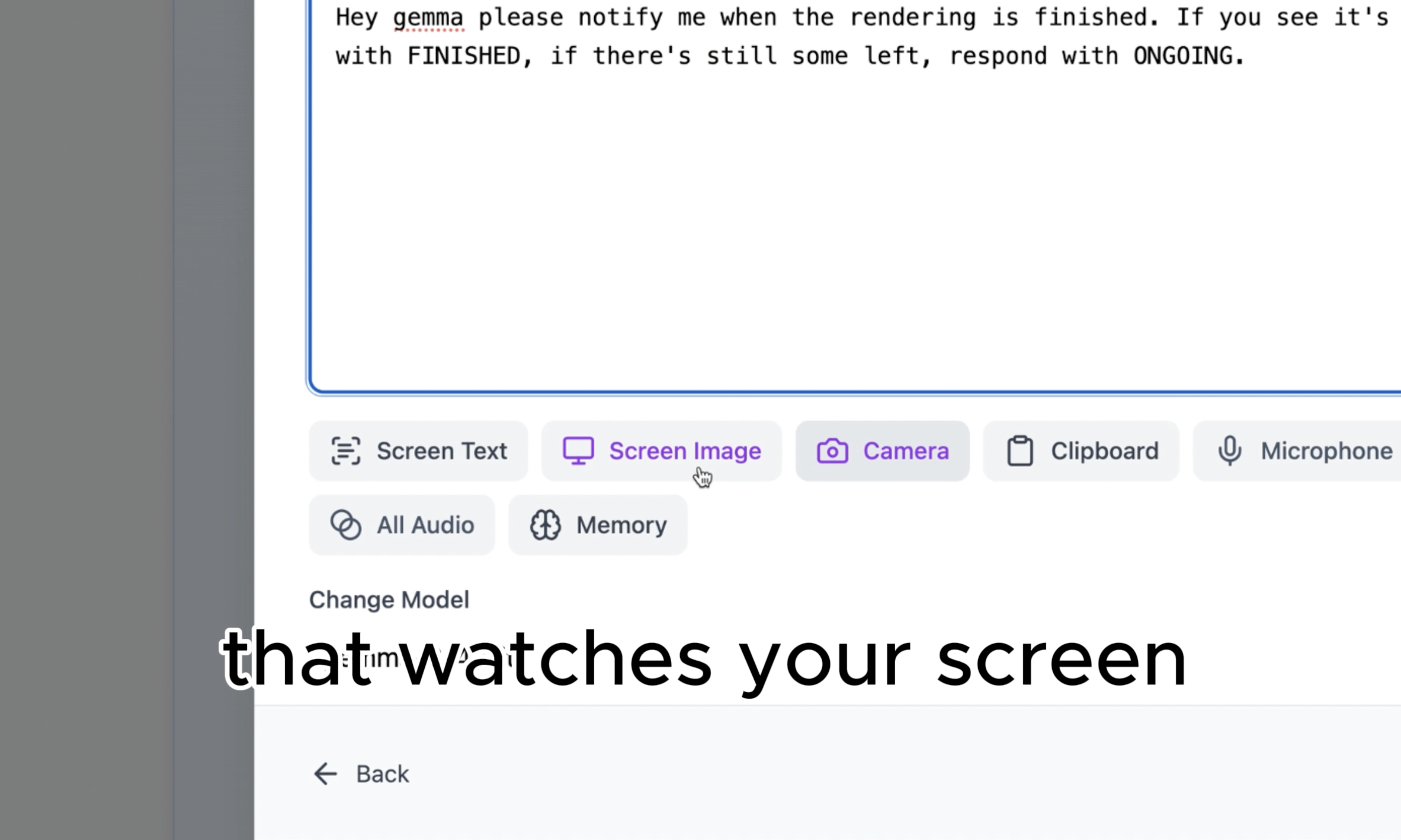 Observer AI is a privacy-first, open-source website that watches your screen, logs, reacts and notifies. "Send me an email when this 2-hour video render is finished" "Listen to this Zoom and log every topic discussed." "Start recording when someone appears"