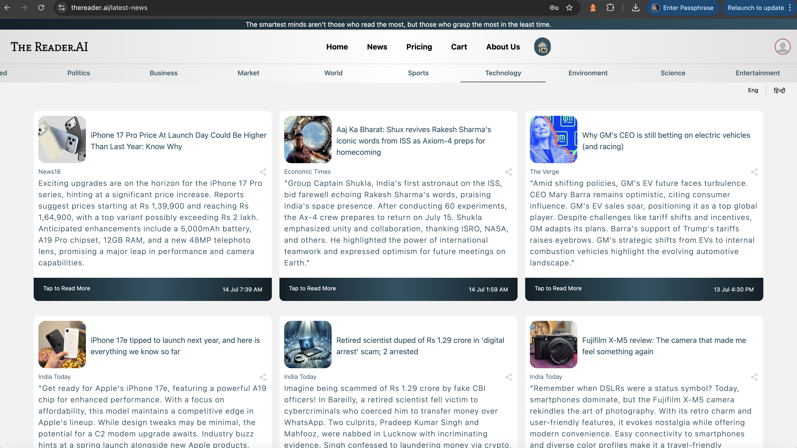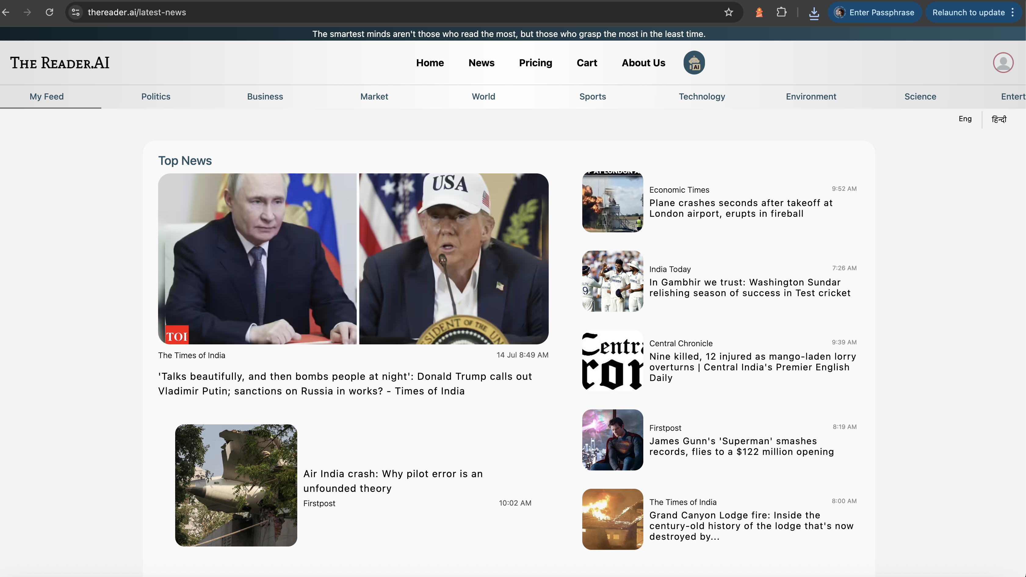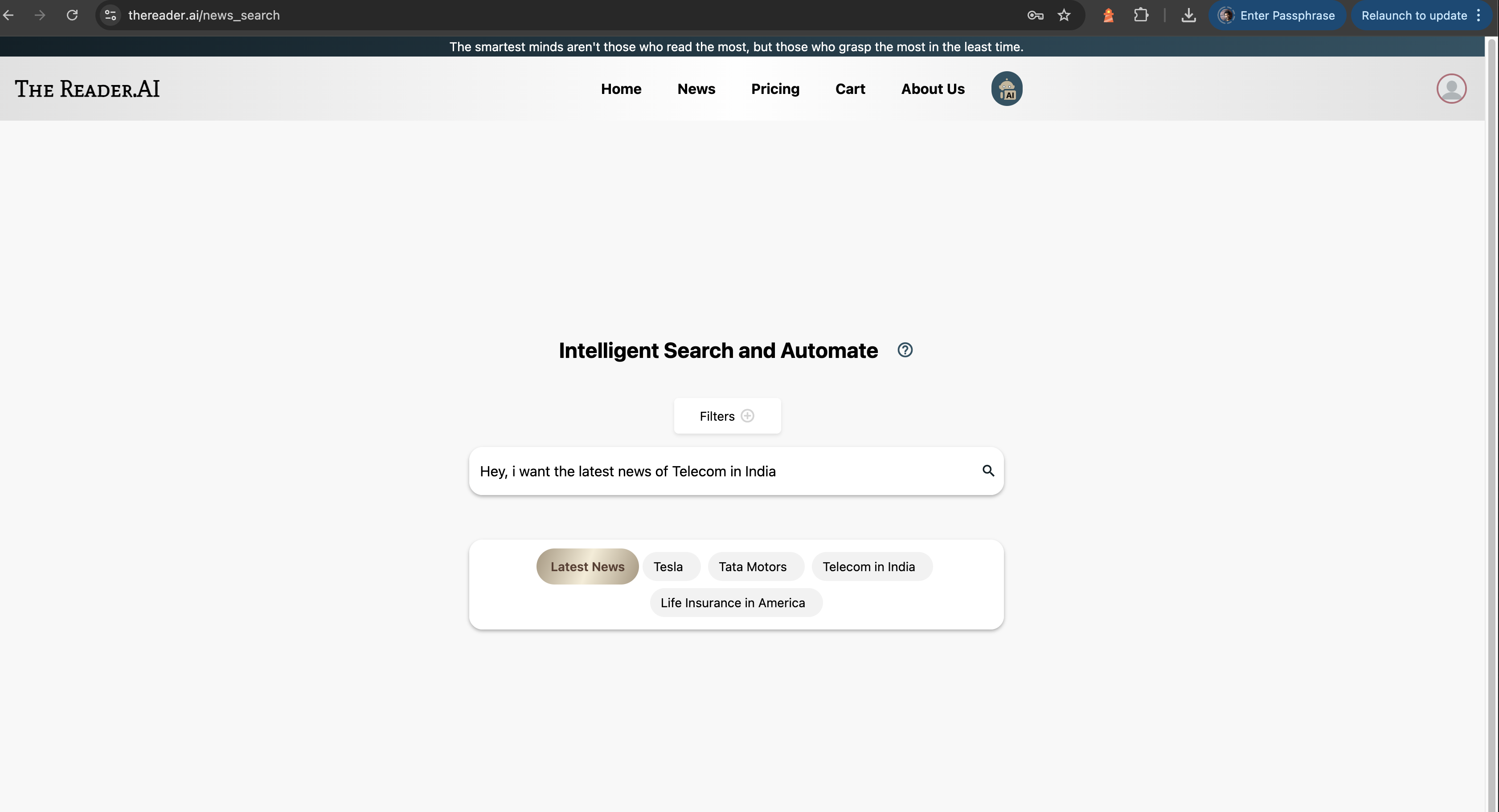 TheReader.AI empowers to read intelligently aggregated, high-quality news—summarized without losing critical facts—from trusted, unbiased sources. It also helps to automate your context, and distill key insights, delivering them daily via email and dashboard.