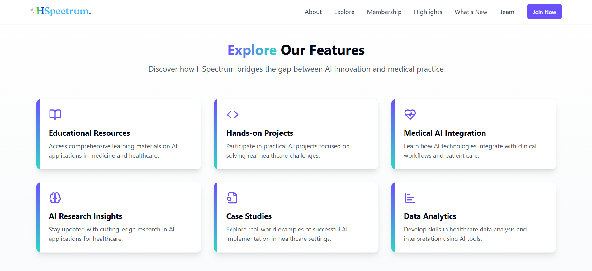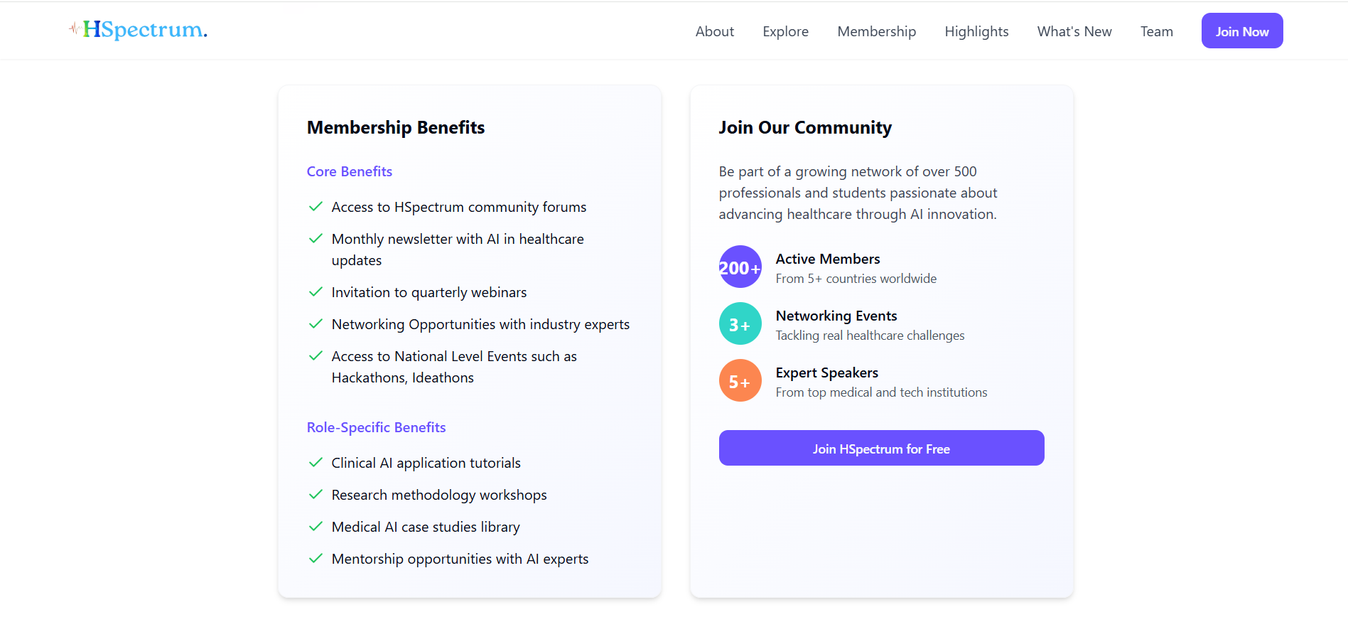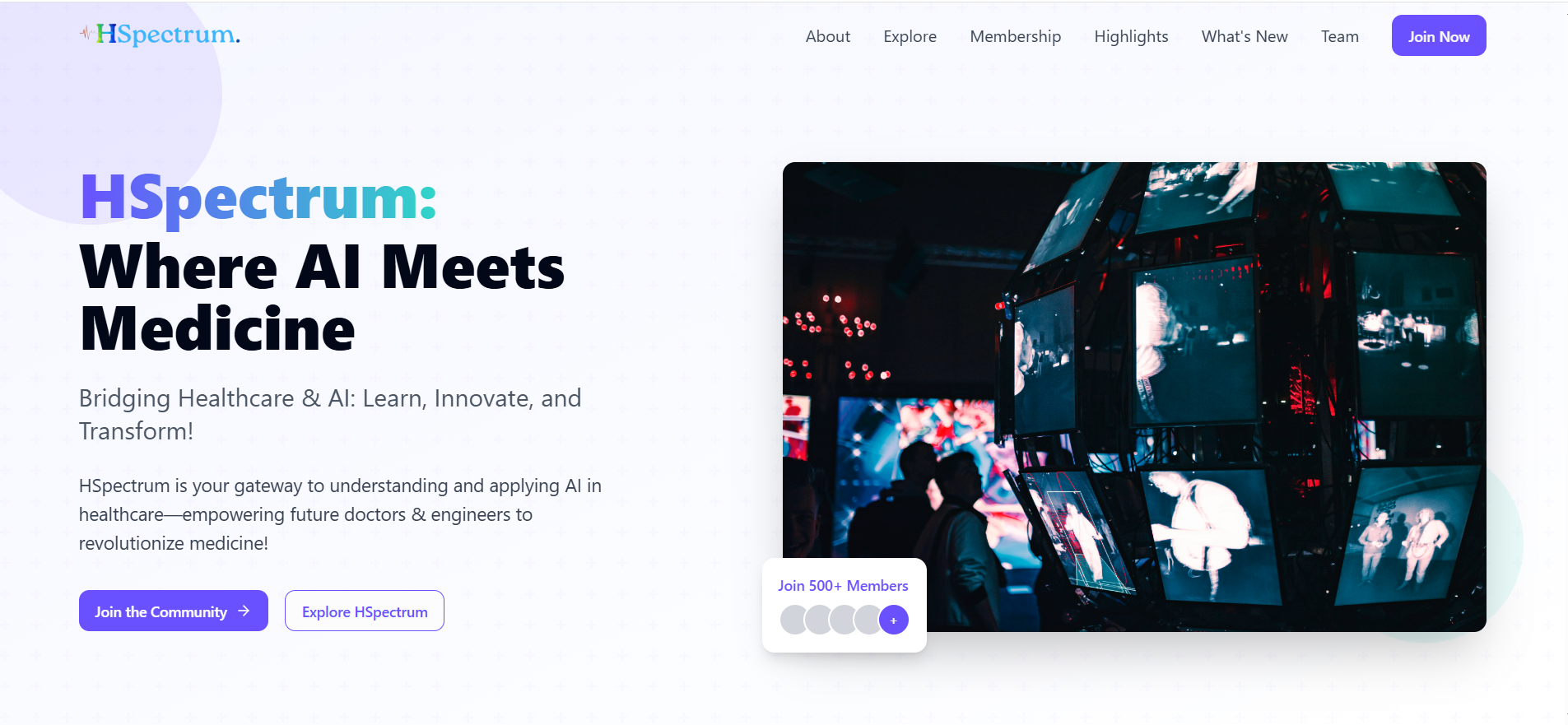HSpectrum is a nonprofit community founded in 2024 to advance AI in healthcare through research, open-source tools, and real-world impact. It's a platform to learn, contribute, and lead innovation at the intersection of tech and healthcare.