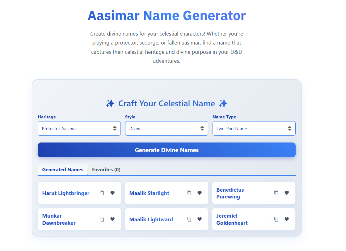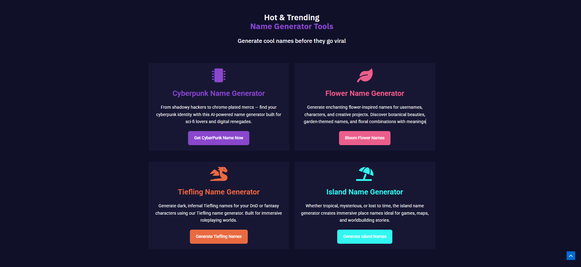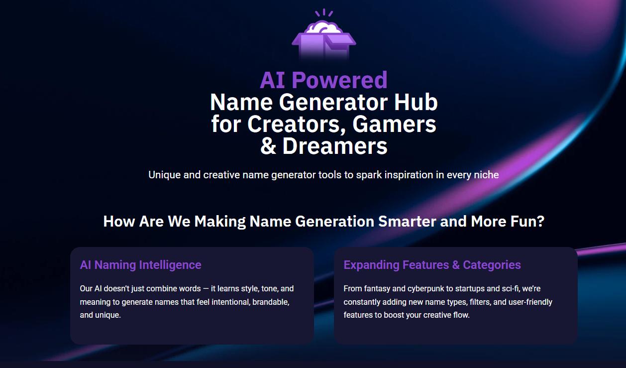 AI驱动的名称生成中心,为创作者、玩家和梦想家打造