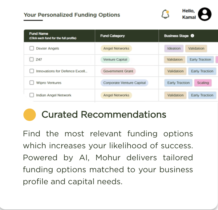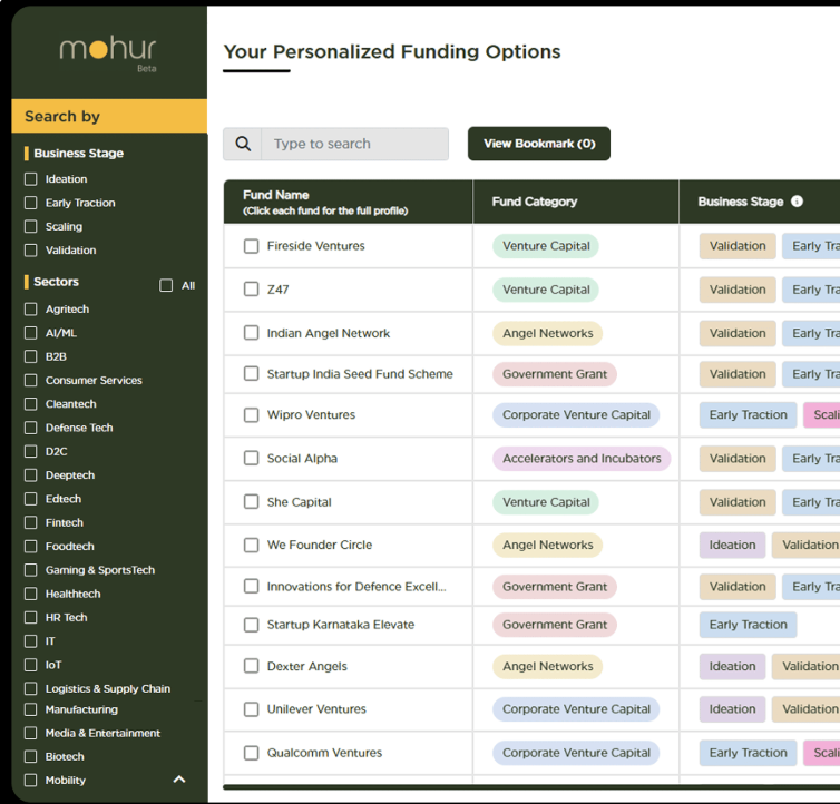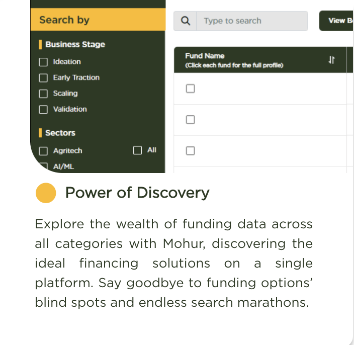 Mohur is an AI-powered capital intelligence platform for all sources of funding. With the vision of bridging the capital access gap across market tiers in India, Mohur's unified platform addresses the acute challenge of discovery and data insights.