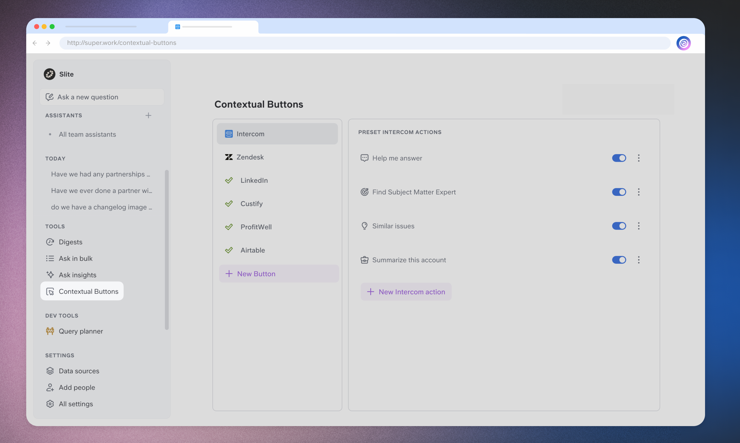 Super now assists your team directly in CRMs, wikis, help centers, or any web app. It extracts on-screen context + your connected knowledge sources to answer questions, draft replies, summarize, or trigger custom assistants, no copy-pasting needed.