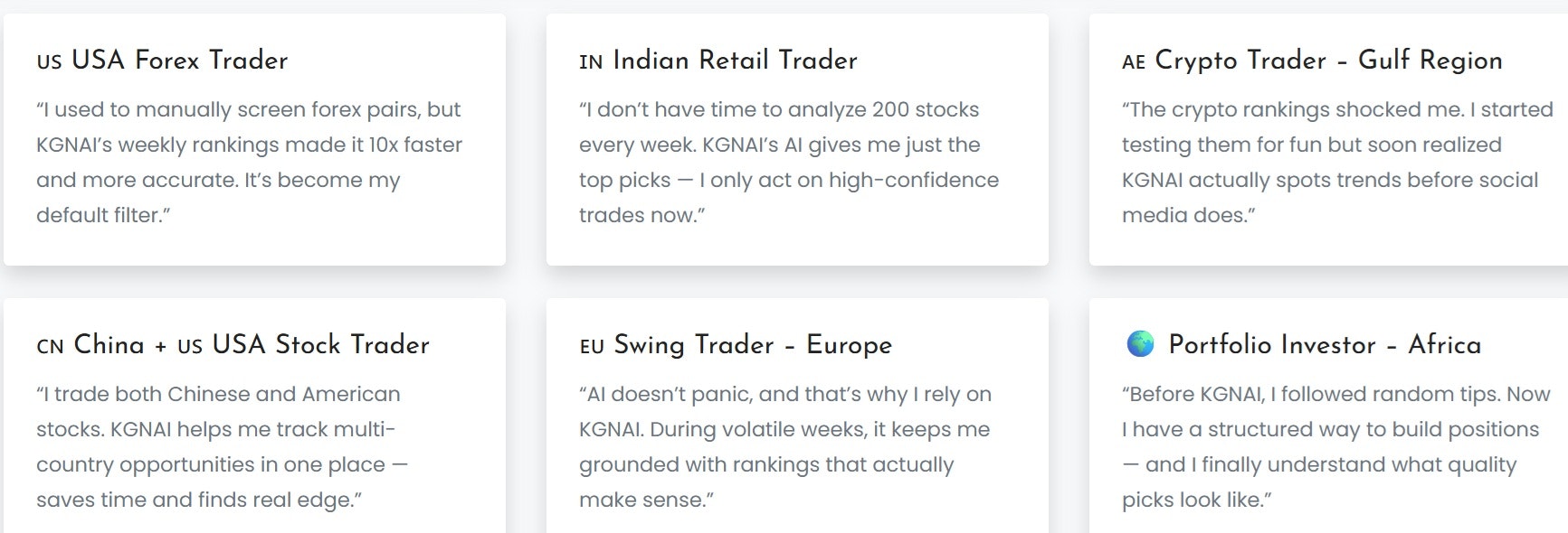 KGNAI is an AI-powered platform that ranks stocks, crypto, and forex using deep learning, genetic algorithms, and fuzzy logic. Designed for serious traders and investors, it helps uncover high-potential assets before the crowd.