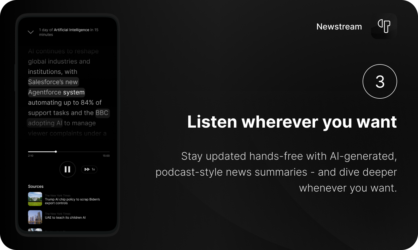 🎧 Meet your new morning routine! Newstream turns top news from your favourite topics into AI-generated audio briefs, so you can catch up hands-free while on the go. The PoC is almost there 🚀 I need your feedback! 🤖 Do you think it's the app the world needs?