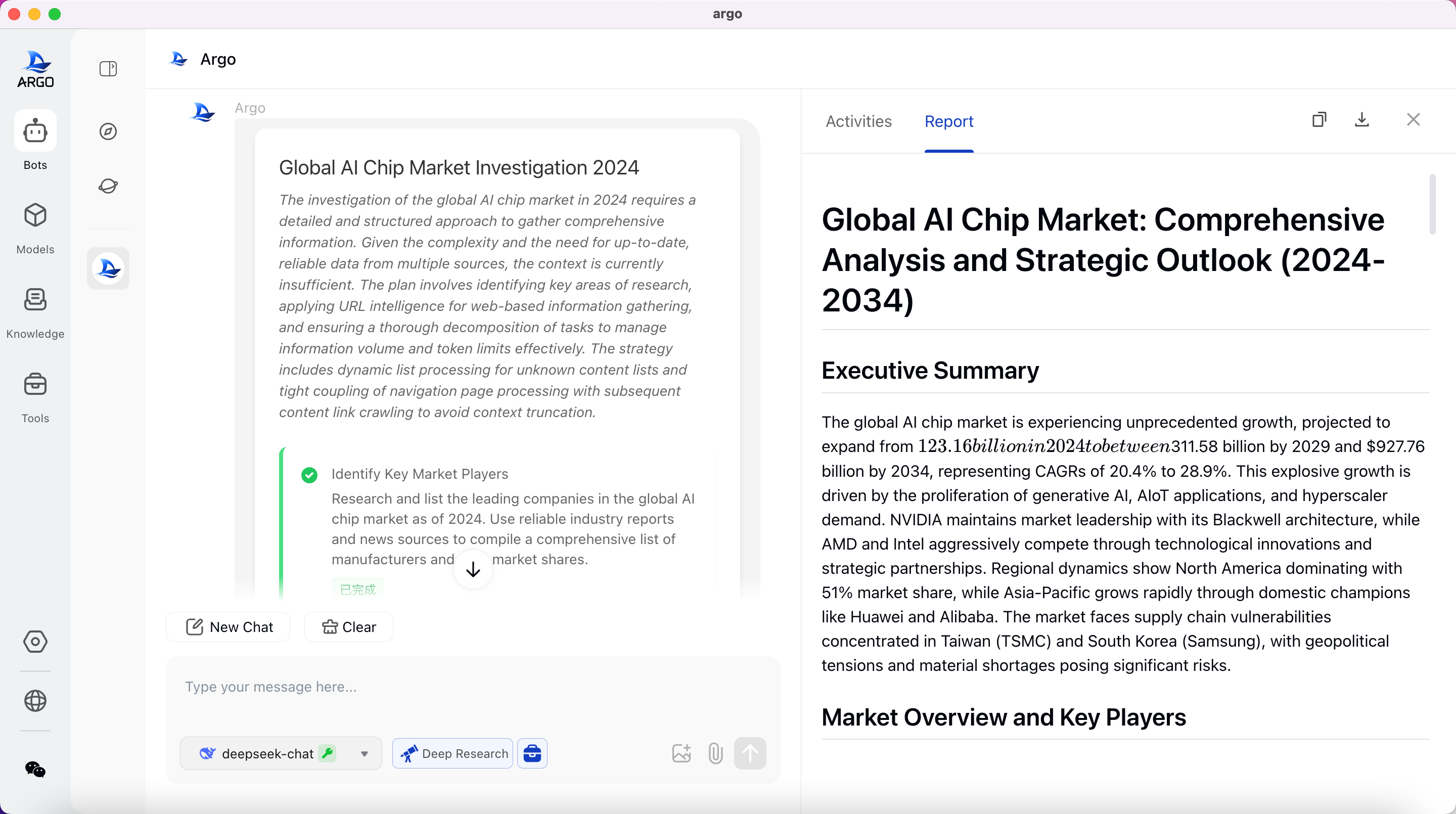 这是一款开源的智能代理客户端,将Local Manus带到您的桌面。通过无缝整合开源与闭源大语言模型,并采用离线优先的检索增强生成技术,ARGO化身为深度研究的强力工具——既能助力思维拓展与任务规划,又能确保您的数据始终存储于本地。