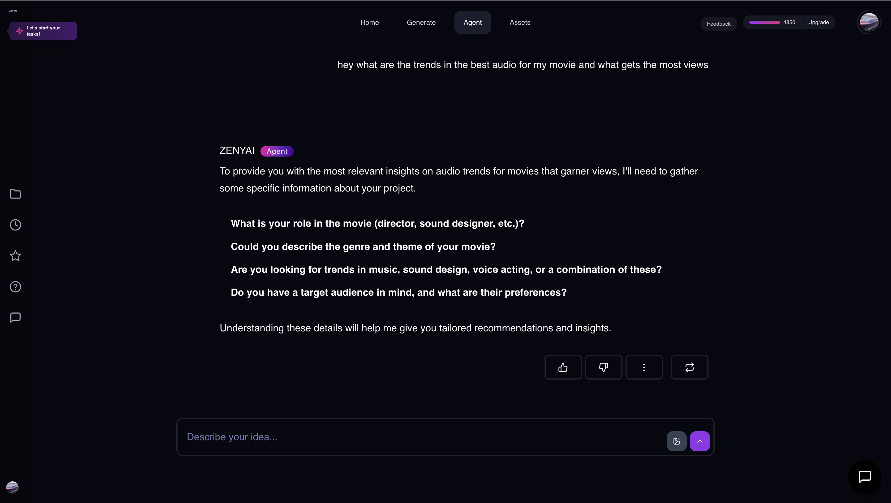 Zenyai is an AI-powered audio assistant that transforms your visual scenes into immersive soundscapes. Whether you're a creator, developer, or storyteller, Zenyai helps you craft the perfect audio to match your visuals effortlessly.