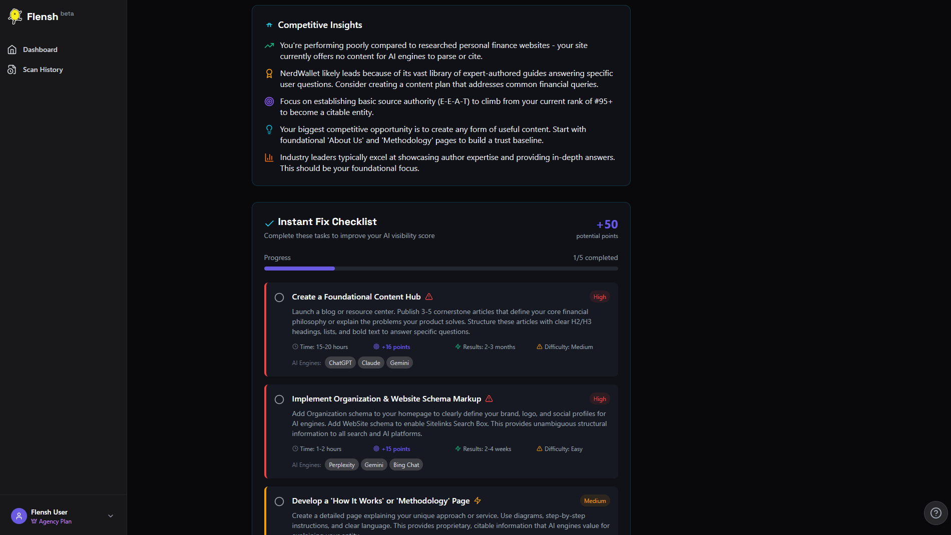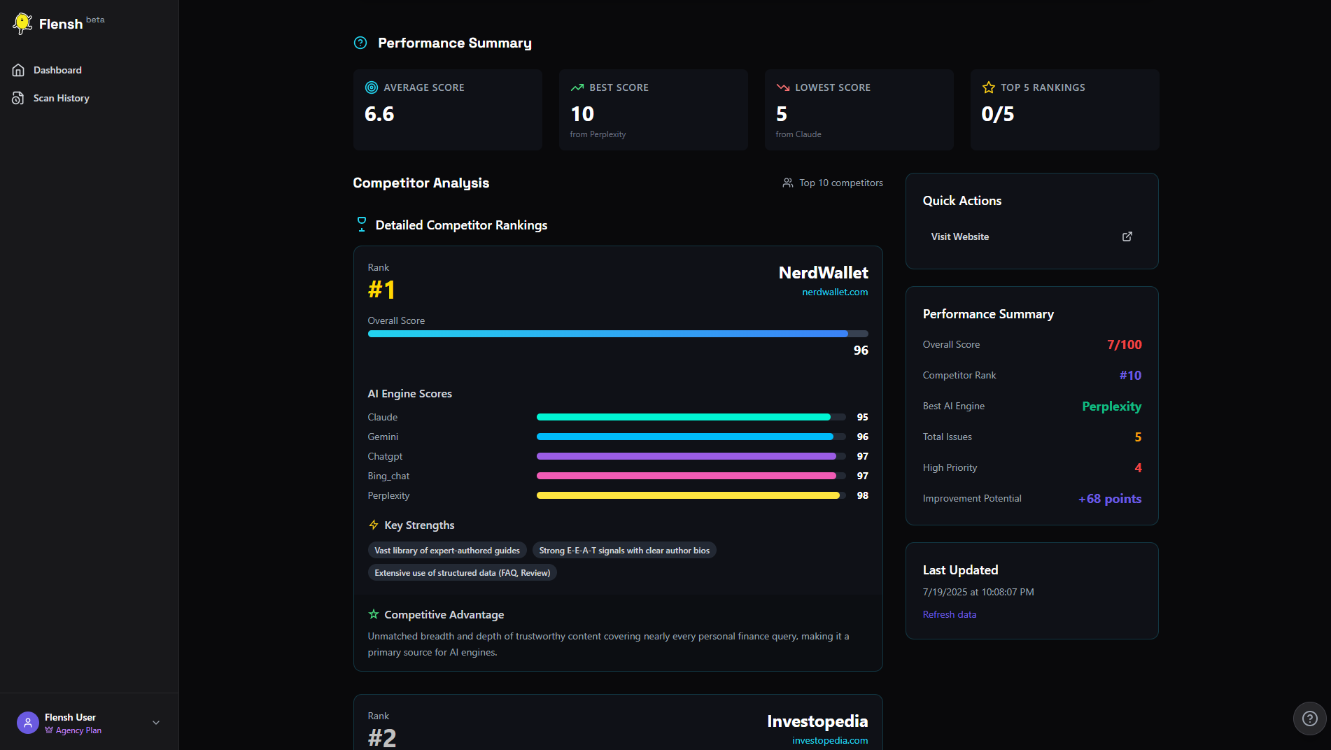 Traditional SEO isn't enough for ChatGPT, Gemini, and Perplexity. You're flying blind, losing traffic to competitors who are already optimized for AI search. Flensh is the first tool built specifically for Generative Engine Optimization (GEO).