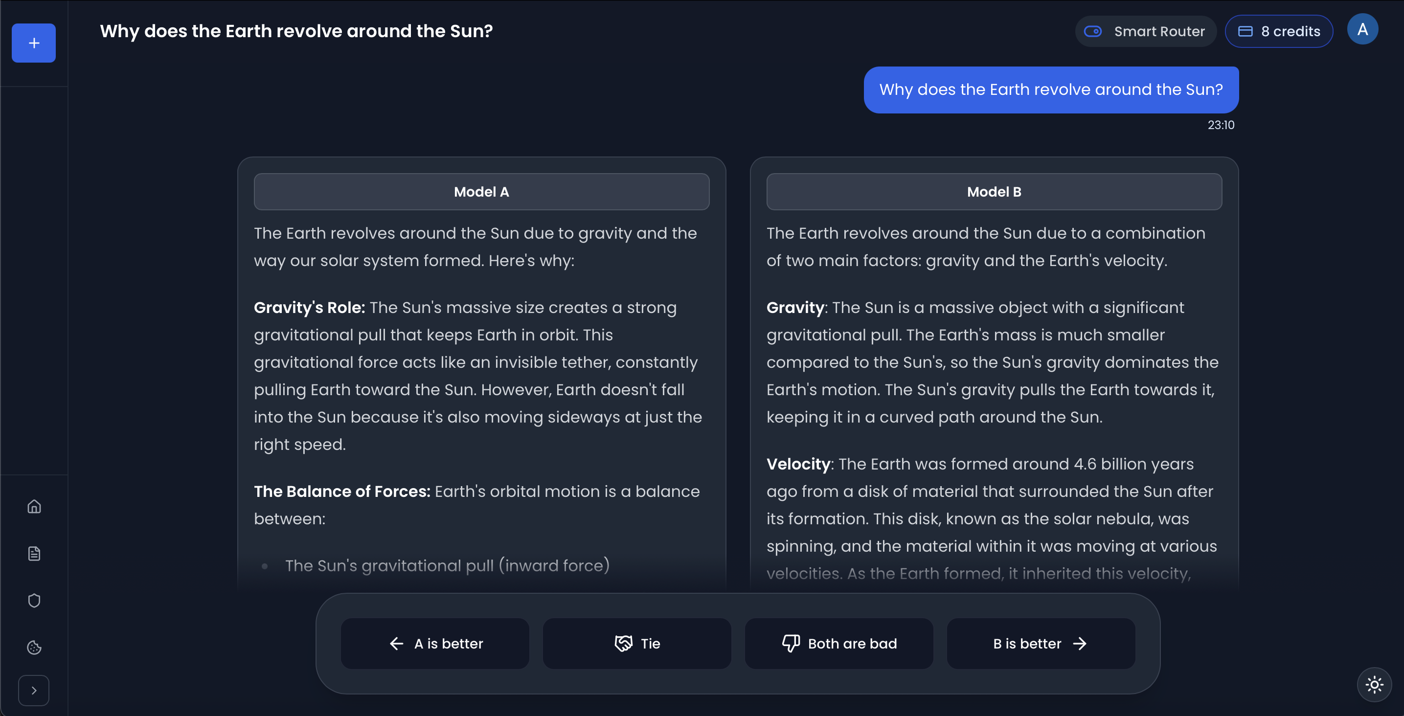 AI model selection made simple. Switchboard automatically routes your prompts to the optimal model from hundreds available. Get instant results or compare side-by-side and earn credits by voting on responses. Perfect for business, teams & individuals.