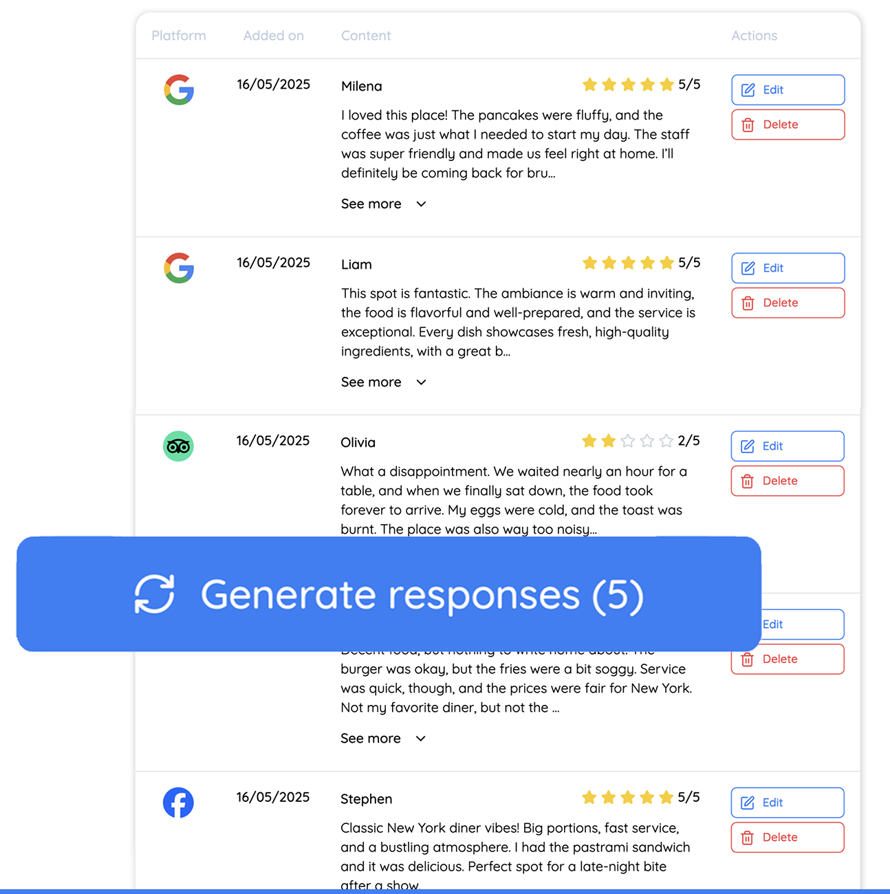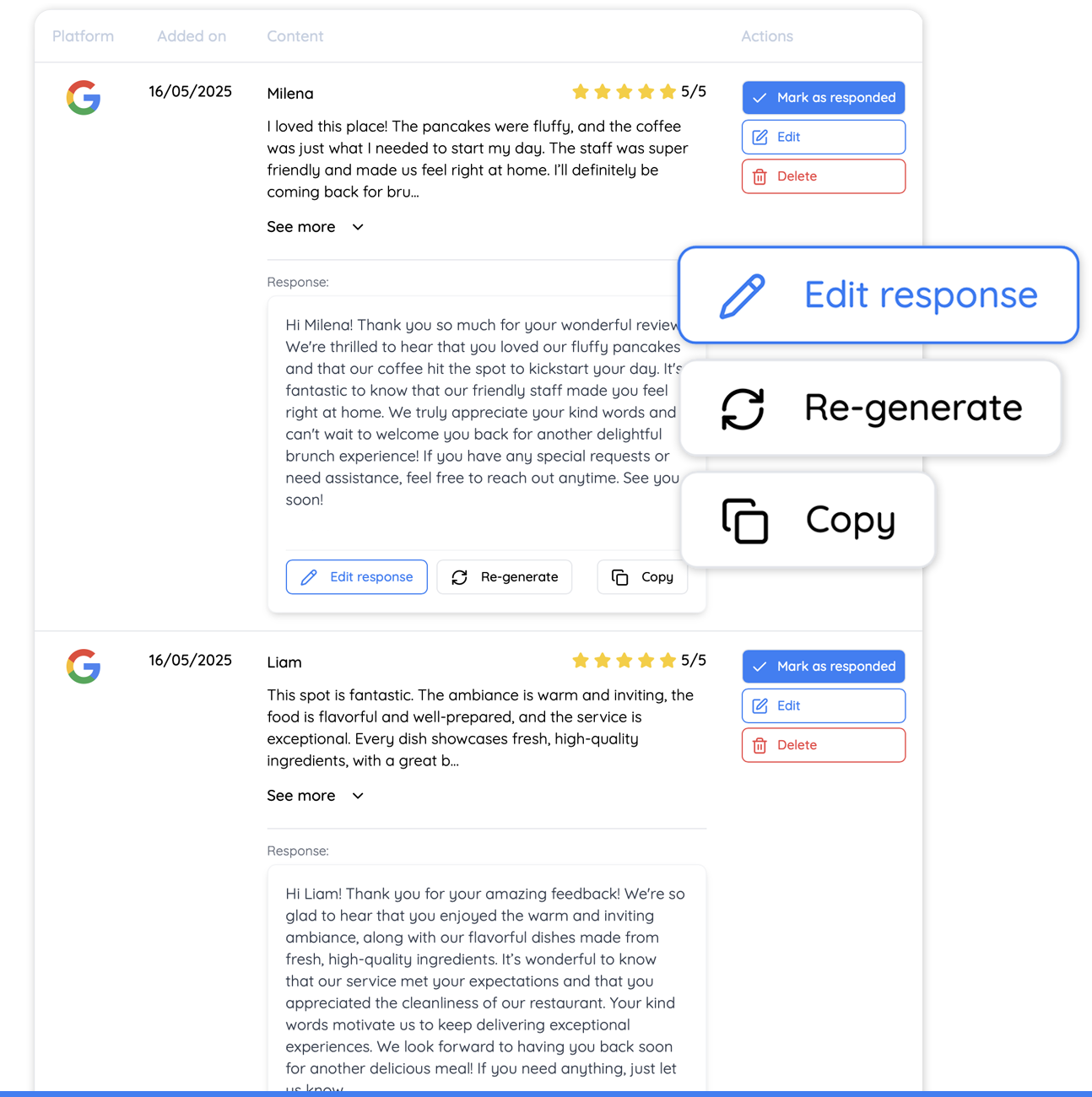 Free yourself from the constraint of customer reviews and optimize your online reputation : •Generate creative, personalized and human responses with one click, faithful to your image •Save precious time / improve your responsiveness •Boost your visibility/SEO