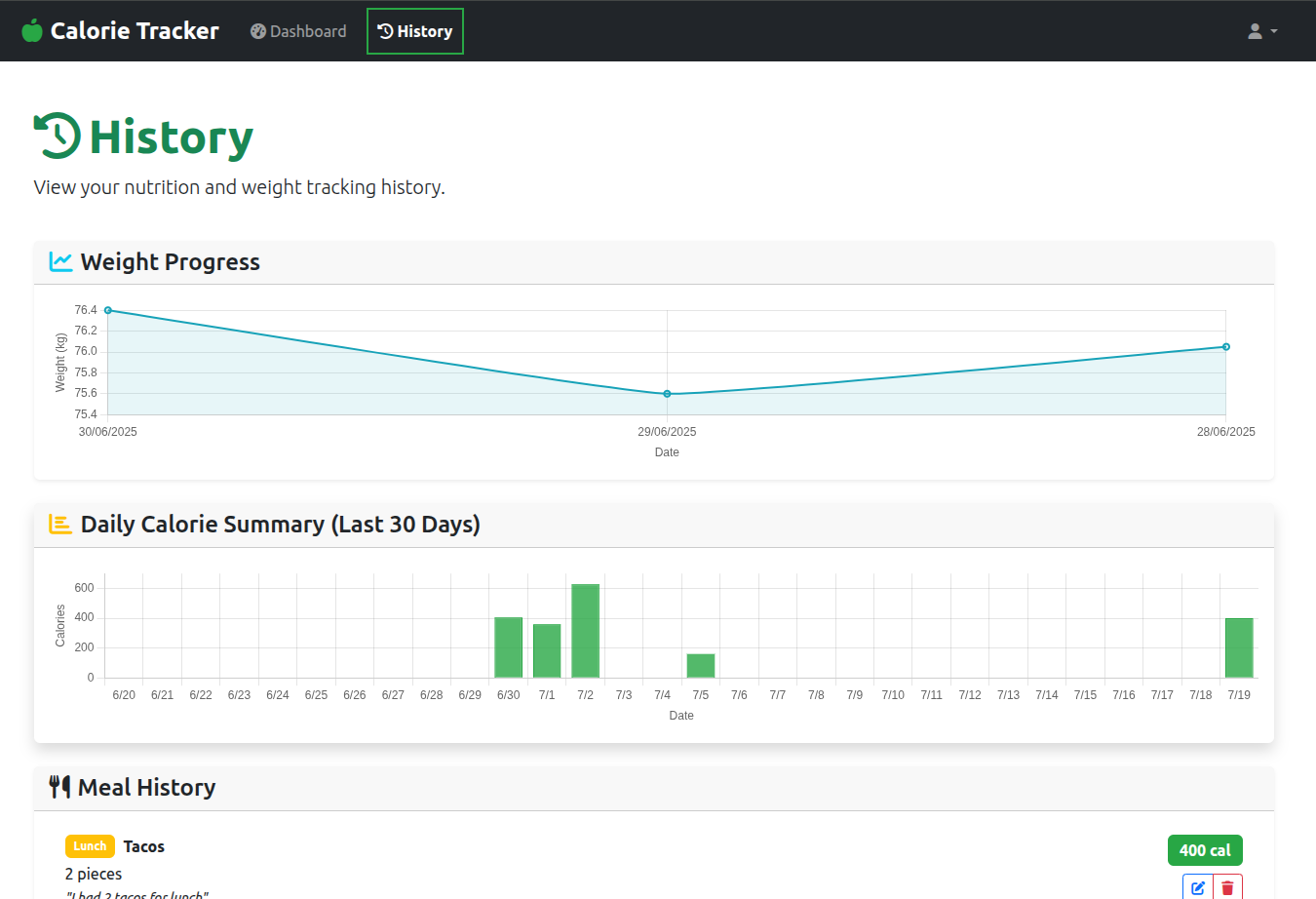 mycalorietracker.fit is a lightweight calorie and weight tracker that lets you log entries using natural language — no clunky interfaces. Just type sentences like "I had a banana and coffee" or "I weigh 160 pounds today", and it does the rest.
